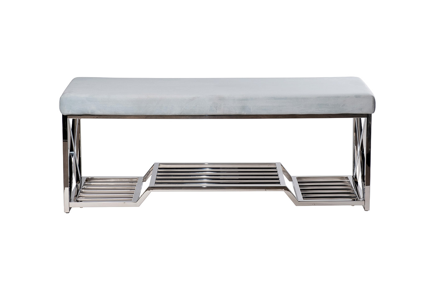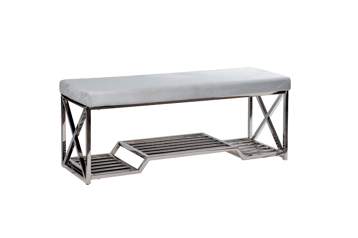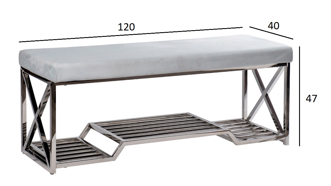 Лаконичная хромированная банкетка идеально подойдет для статусного интерьера. Элегантный дизайн, простые формы, премиальное качество исполнения. Ничего вычурного – корпус из нержавеющей стали и мягкое сидение с обивкой из качественного велюра. Стильная банкетка с полкой для обуви органично впишется в пространство прихожей и добавит обстановке функционального уюта.