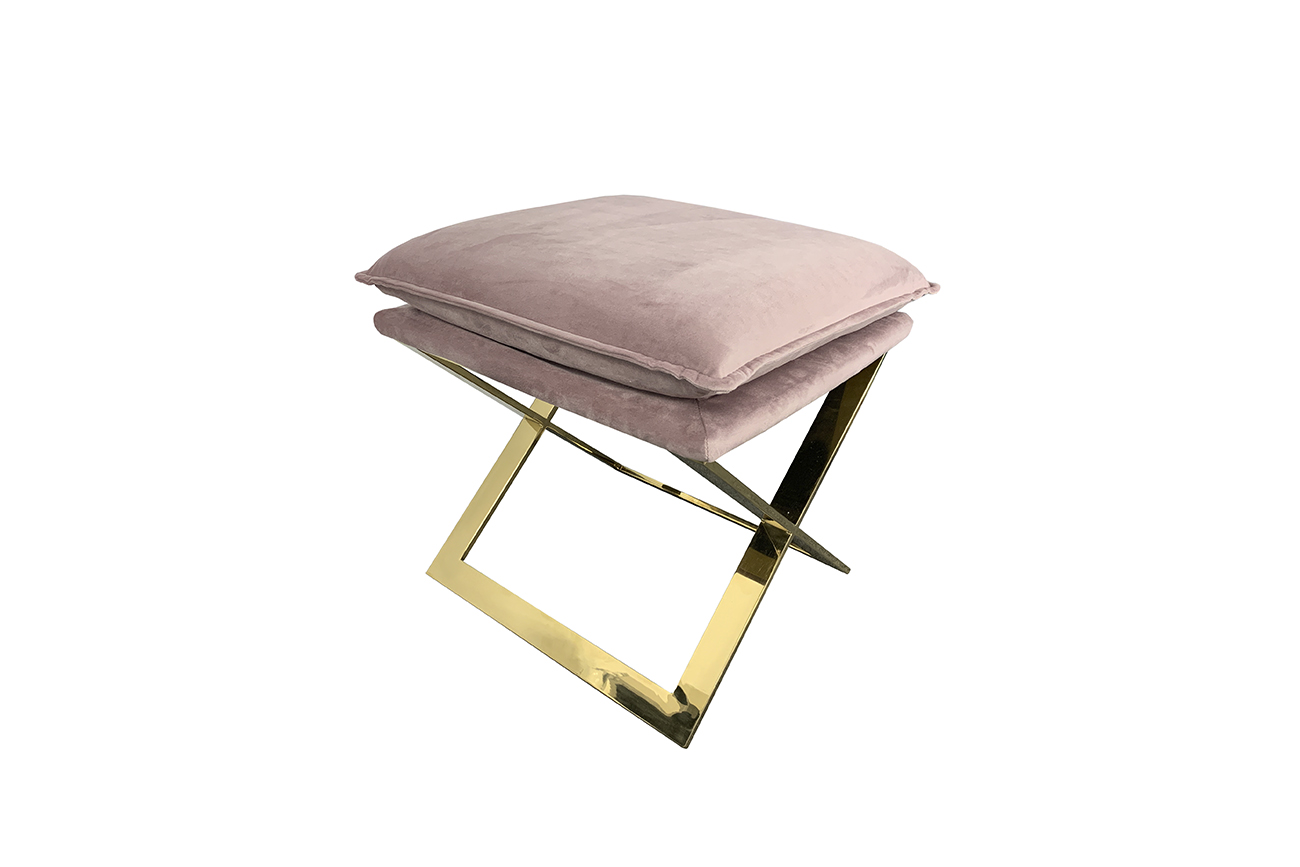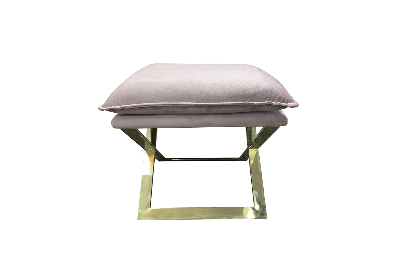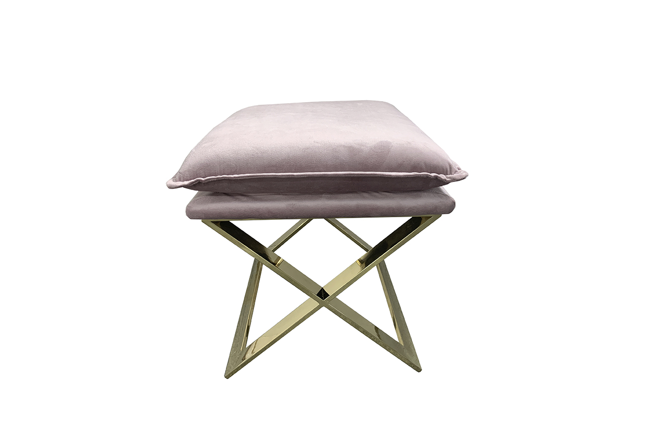 Изящная банкетка с мягким сиденьем-подушкой станет красивым и функциональным элементом обстановки вашего дома. Велюр нежнейшего розового оттенка прекрасно сочетается с опорой из полированной стали цвета золота. Банкетка послужит подставкой под ноги рядом с креслом или диваном, удобным низким сиденьем в прихожей или детской. Банкетка будет выглядеть нарядно и уместно в любой комнате и практически в любом современном интерьере - от классики до модерна, от ар-деко до стиля бохо-шик.