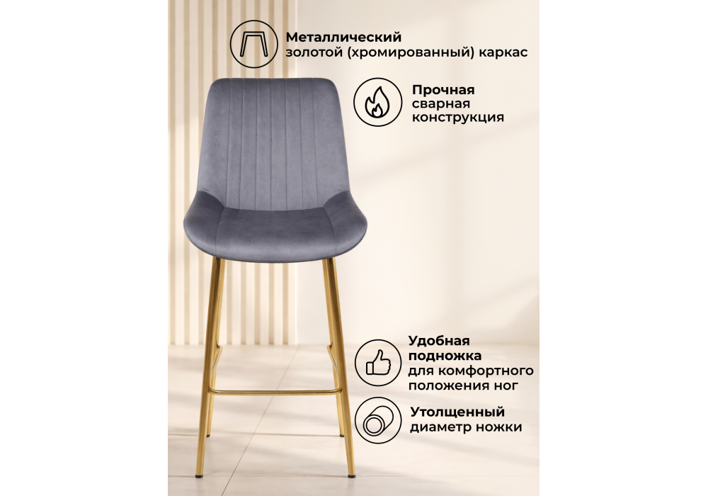 Материал каркаса - металл; Материал сиденья - велюр; Материал обивки - велюр; Ширина - 49; Глубина - 57; Высота - 102; Ширина сиденья - 47; Глубина сиденья - 41; Высота сиденья - 63;