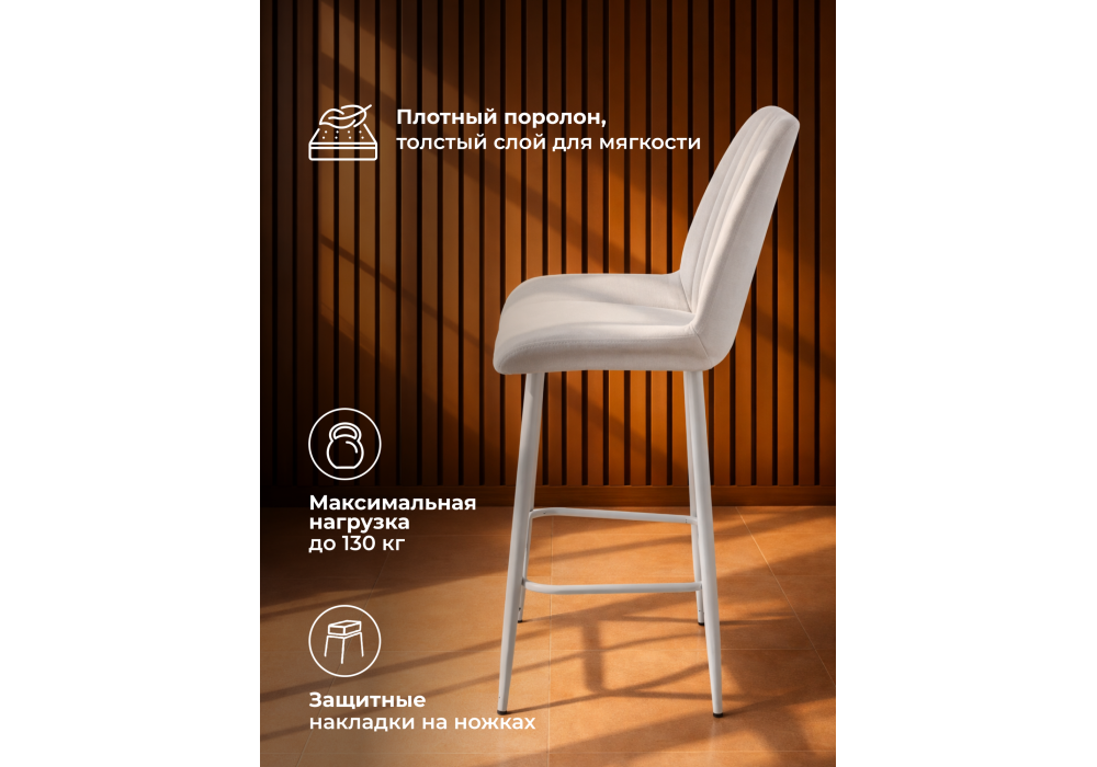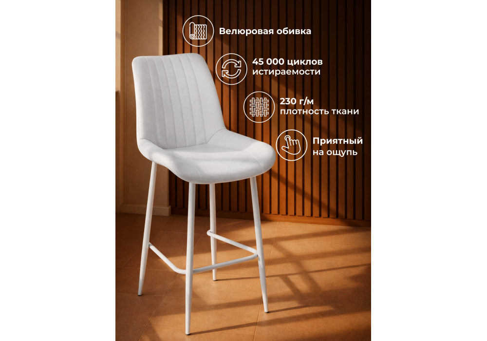 Материал каркаса - металл; Материал сиденья - велюр; Материал обивки - велюр; Цвет ножек - серый; Ширина - 49; Глубина - 57; Высота - 102; Ширина сиденья - 47; Глубина сиденья - 41; Высота сиденья - 63;