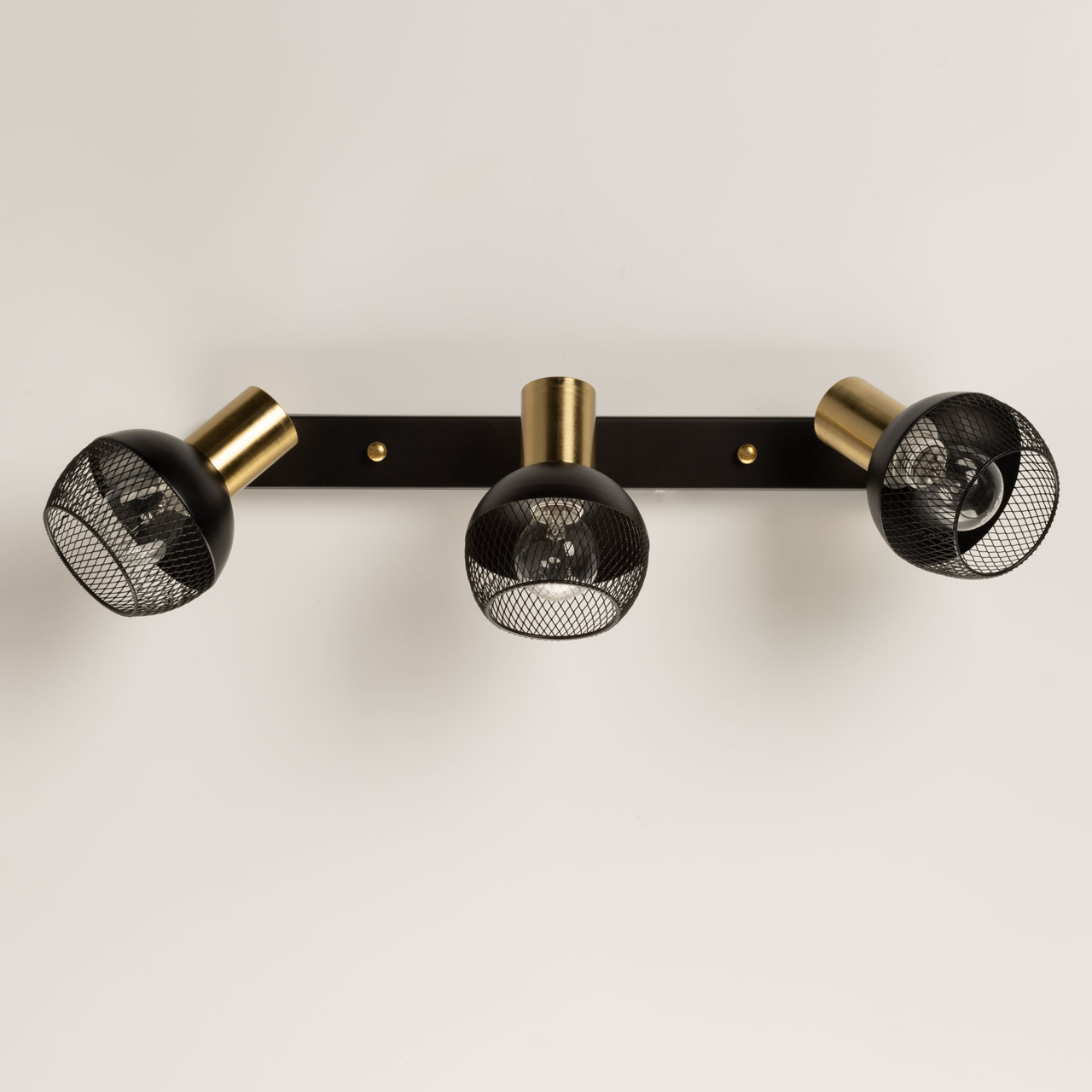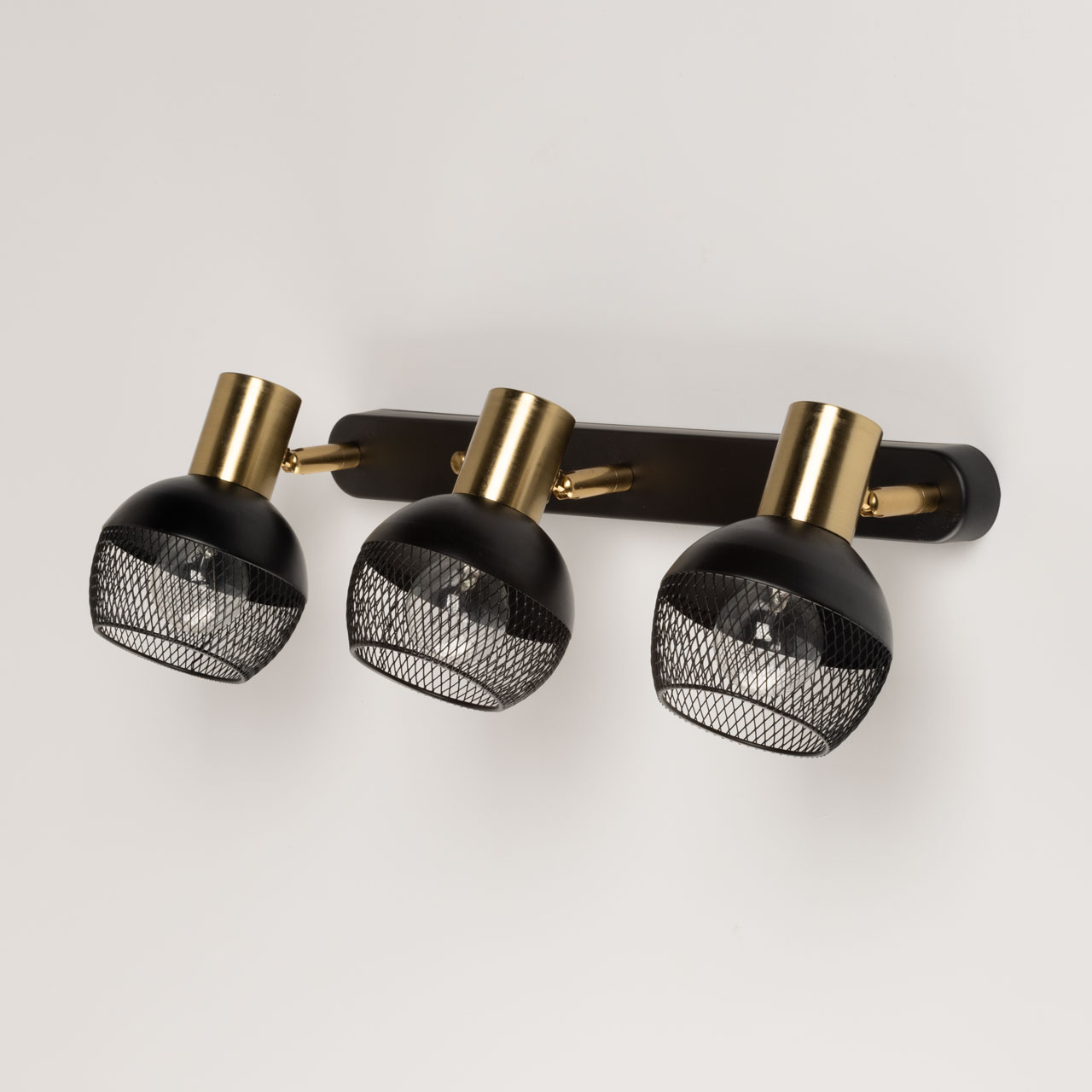 Металлическое основание настенного бра и плафоны окрашены в черный цвет. Отдельные элементы основания гальванизированы в цвет латуни.