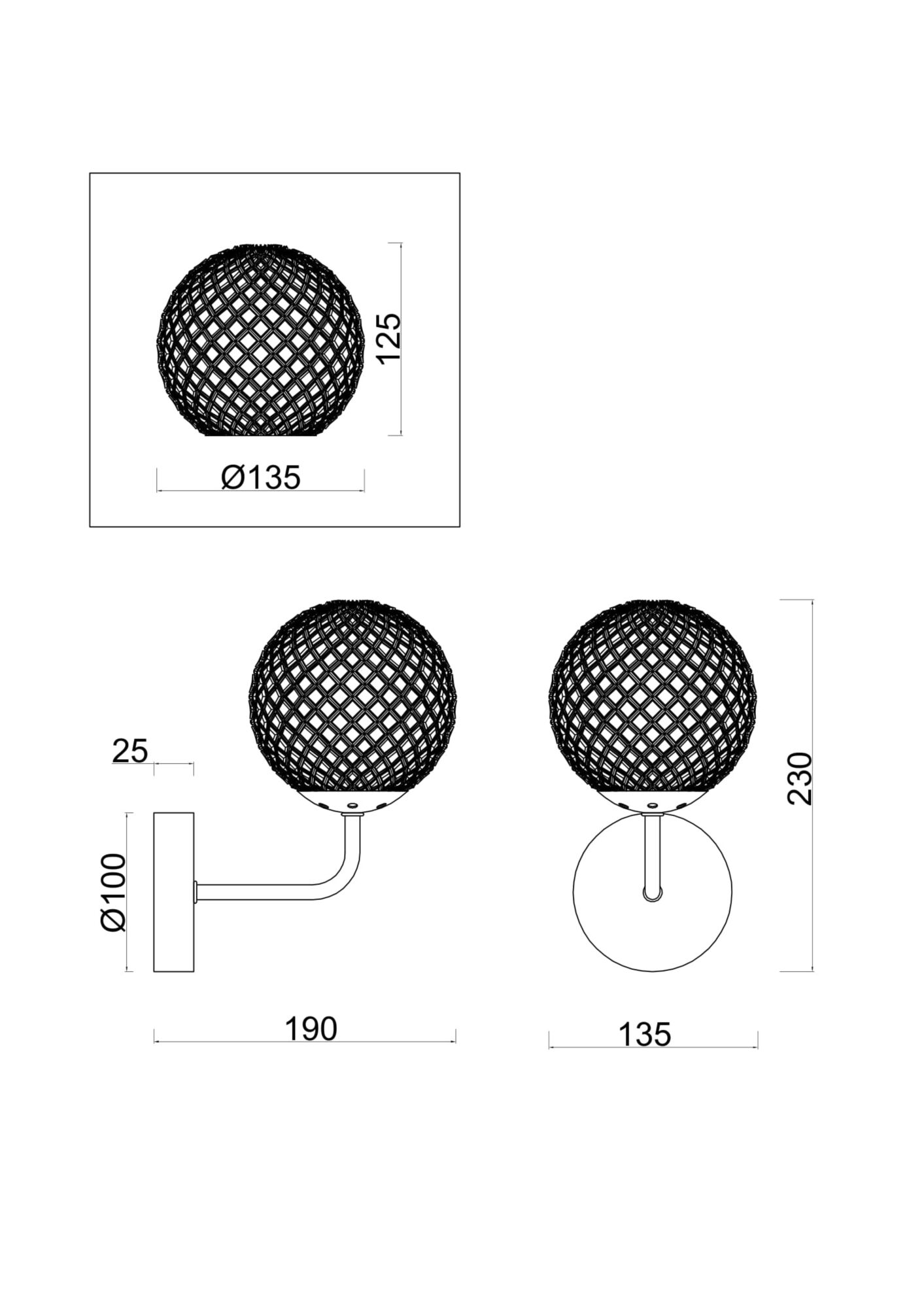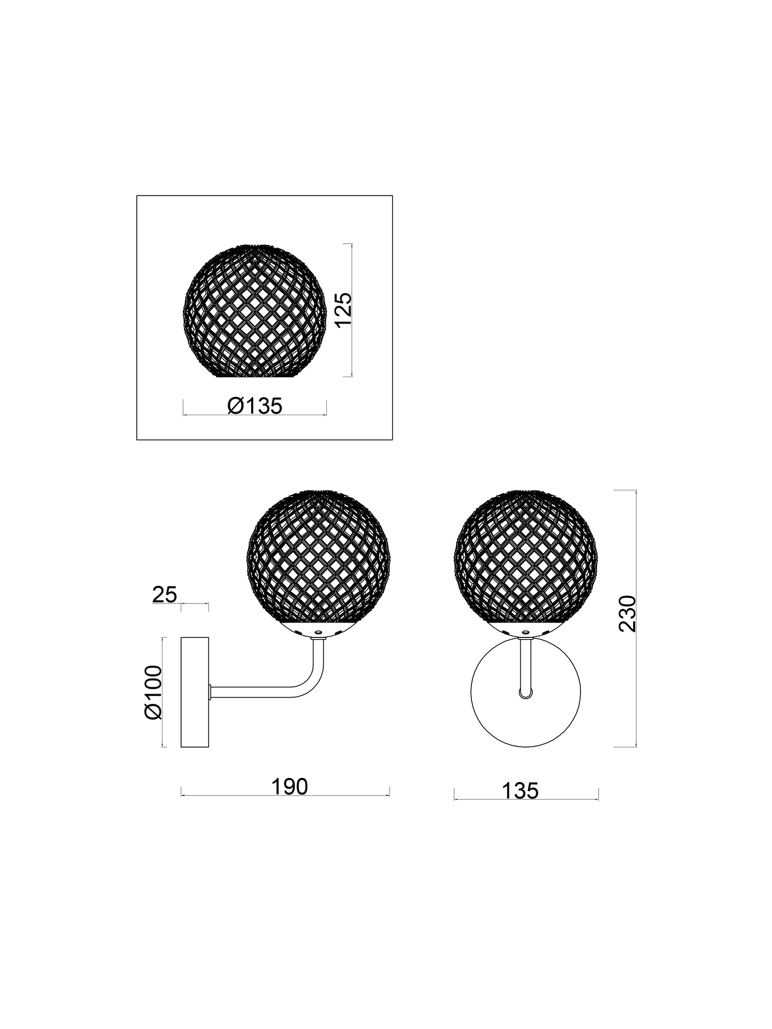- Диаметр плафона (абажура): 135