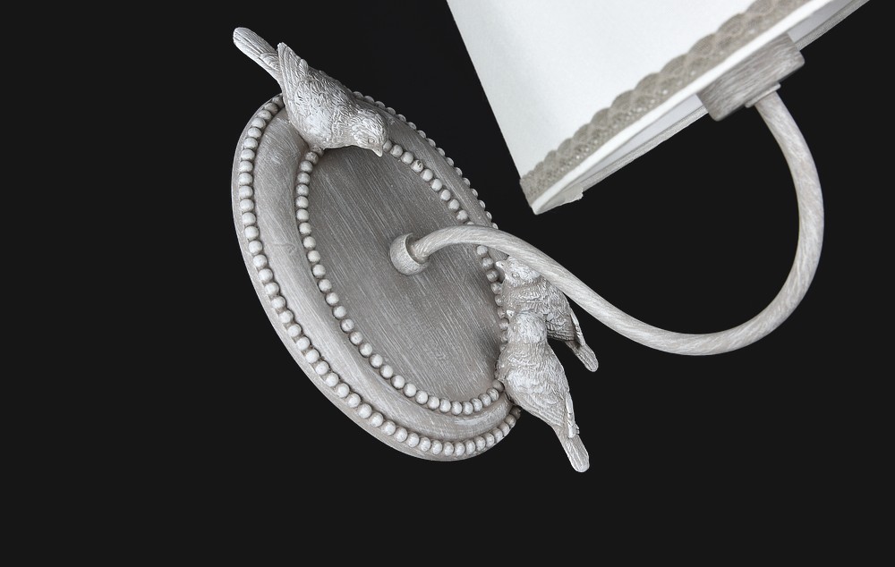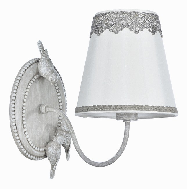 Бра Maytoni Bouquet ARM023-01-S отлично подойдет для освещения гостиной, спальни, детской комнаты. Белый плафон изготовлен из ткани. Плафон имеет форму конус. Плафон направлен вверх. Для светильника необходимо 1 лампа накаливания или 1 светодиодная лампочка. Настенный светильник имеет цоколь Е14. Площадь освещения 2 кв.м. Арматура светильника серого цвета выполнена из металла. Украшением настенного светильника являются две птички. Общая мощность настенного светильника 40 W. Бра современного стиля выгодно подчеркнет ваш интерьер. Настенный светильник стиля прованс станет эффектным элементом декора, который украсит любую комнату. Страна бренда Германия. Производство Китай. Гарантия 1 год.