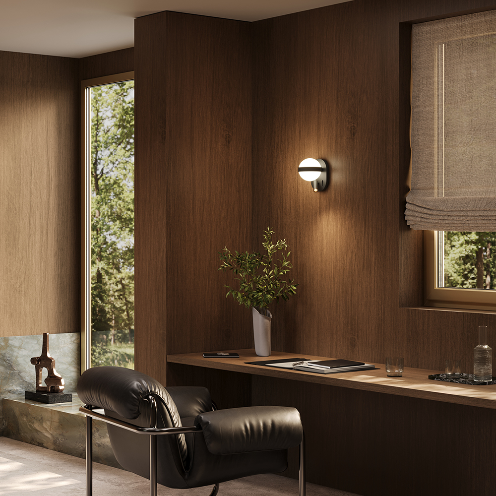 Сочетание декоративной и функциональной подсветки. Металлическая арматура в двух цветах: черный, латунь. Два независимых LED-источника 3000K: матовый акриловый плафон для рассеянного света и поворотный спот для направленного освещения. Раздельное управление кнопками на корпусе. Настенный светильник с системой двойного освещения. Для гостиных, спален, кабинетов и детских комнат. Обеспечивает как общее освещение, так и точечную подсветку для чтения и работы.