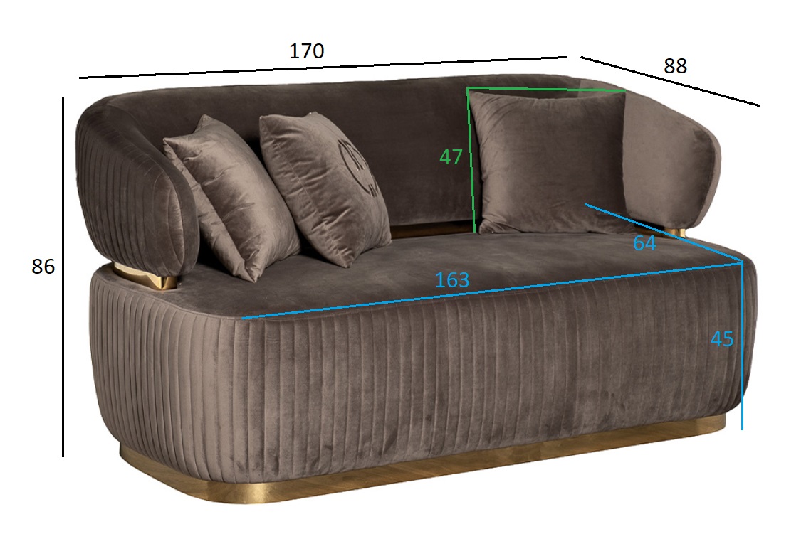 Коричневый велюровый диван из серии Glarus – пример идеального сочетания безупречной эстетики и функциональности мягкой мебели. Органично вписывается в стилистику ар-деко, шебби-шик, неоклассика. Нераскладной двухместный диван за счет компактных размеров легко найдет себе место и применение в любом помещении. Эффектно смотрится в интерьере гостиной, лаунж-зоны, приемной, холла. Для комфорта и поддержки спины предусмотрена мягкая спинка и красивые подушки, а отделка из стали добавляет мебели изысканности и элегантного шика. На сайте Garda Decor вы можете купить двухместный диван, а также другую мебель из этой серии. Габариты сиденья: ширина 163см, глубина 64см, высота от пола 45см, максимальная нагрузка - 150кг на одно посадочное место. В комплект входят 1 декоративная подушка 47*47см с логотипом GD (GARDA DECOR) и 2 подушки 47*47 без вышивки. Сочетается с трехместными диванами 102AN-DIV-1303-SER, креслами 102AN-KRES-1301-SER и пуфами 102AN-PUF-1300-KOR.