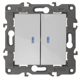 Выключатель двухклавишный с подсветкой ЭРА 10AX 250V 14-1105-01 Б0034237