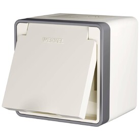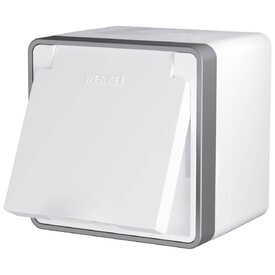 Розетка LK Studio открытой установки с заземляющими контактами и защитными шторками (белый) 813204