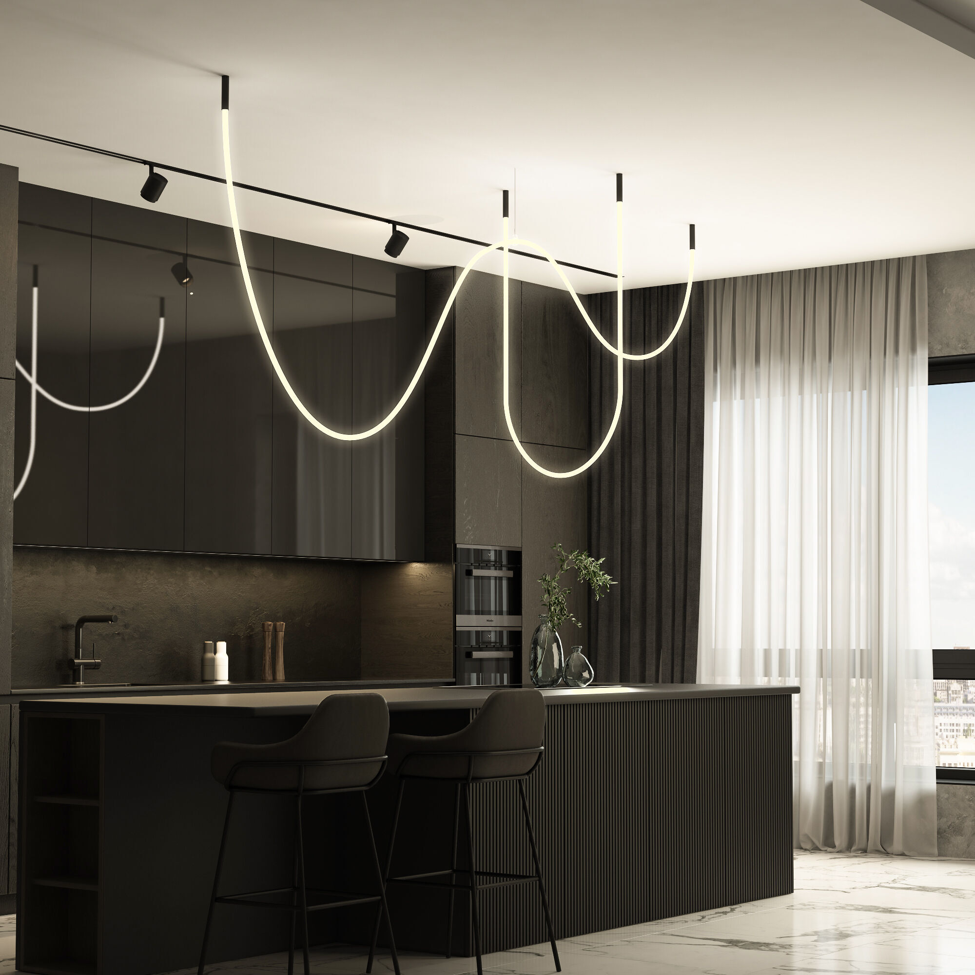 Гибкий неон Full Light 5 м способен в корне изменить привычное восприятие интерьера кухни, гостиной или кабинета. Гибкость неона и разнообразие декоративных крепежей позволяют расположить конструкцию в разных вариациях. Световой элемент двойной LED-ленты излучает теплый белый свет 3000К всей своей поверхностью. Угол рассеивания составляет 360°.  Для использования необходимо установить трансформатор. Крепления и заглушки продаются отдельно.
