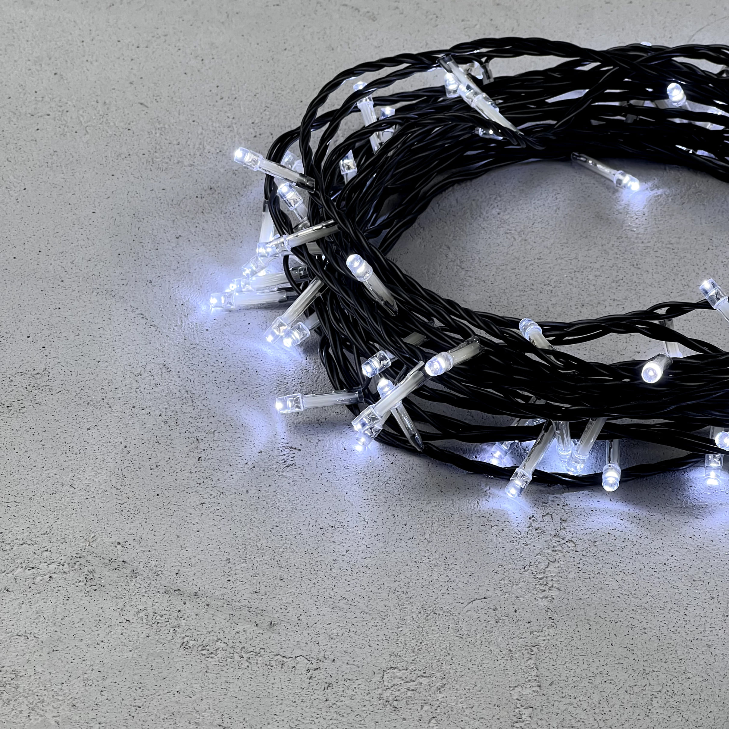 Гирлянда Нить с Контроллером 10м Белая 220В, 100 LED, Провод Черный ПВХ, IP20 LTC PST100F8-11-2W в Череповце
