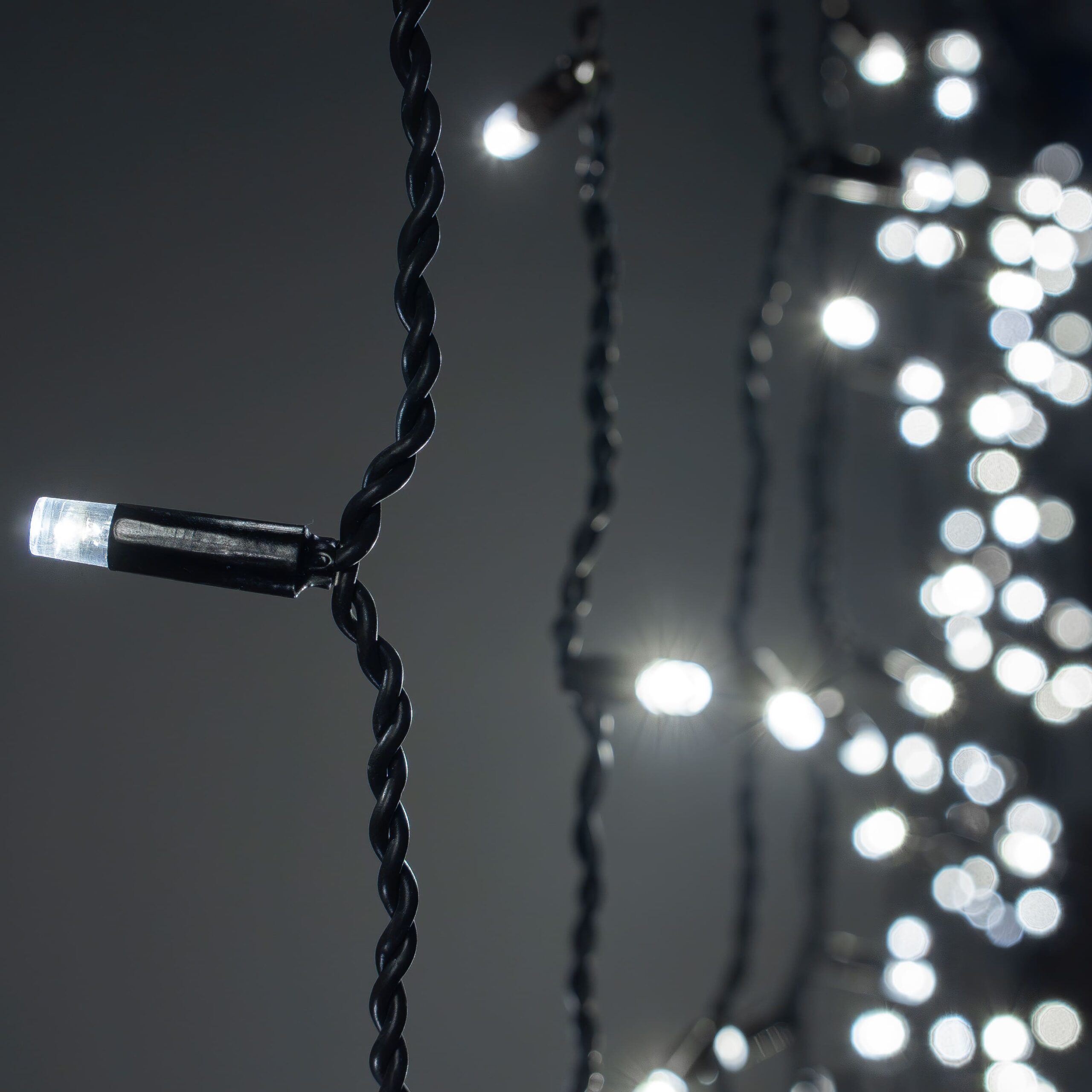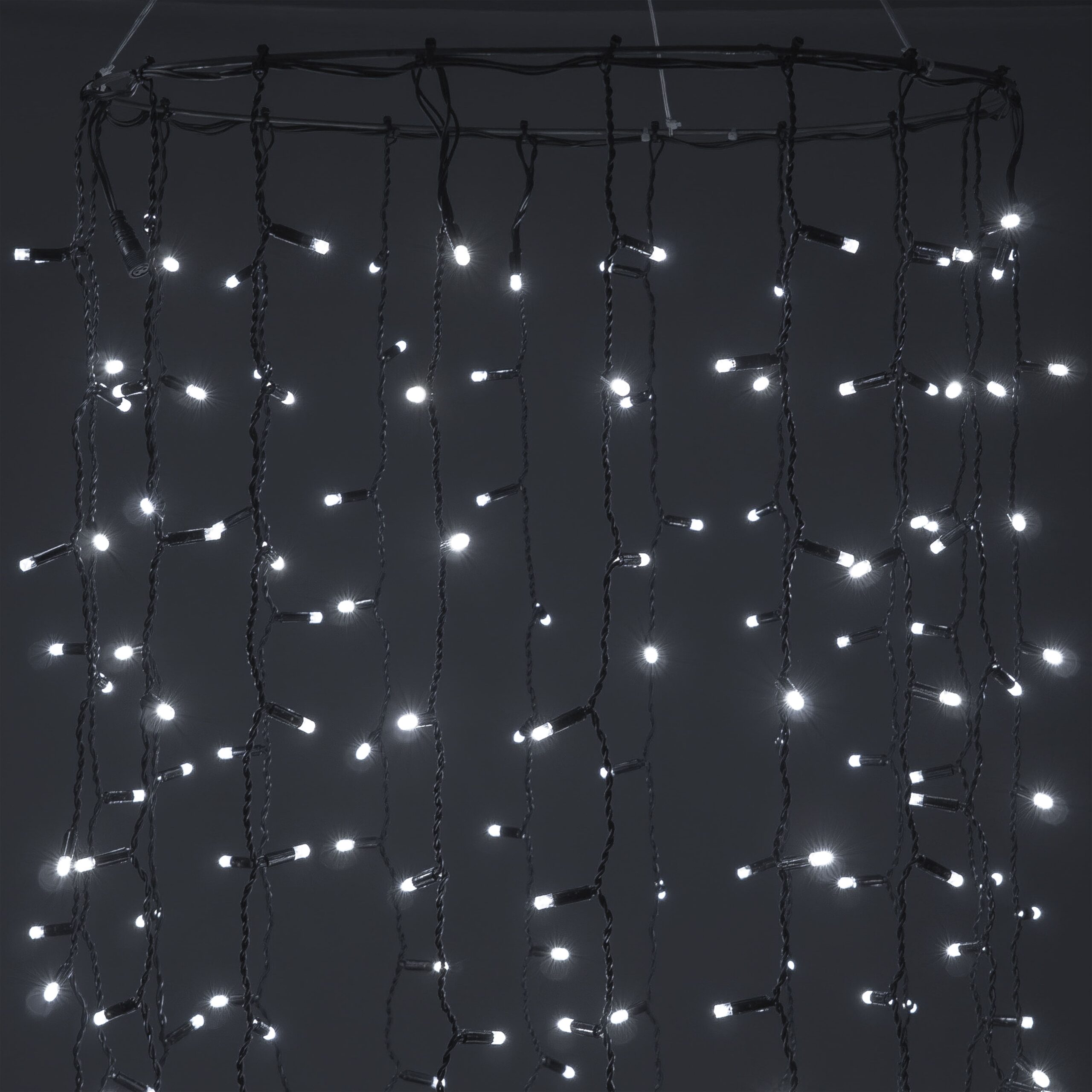 Купить "Гирлянда Занавес Облегченный c Колпачком 2 x 1 м Белый 220В, 200 LED, Провод Черный Каучук 2,3мм, IP65 LTC ECO200NOT-1-2W"