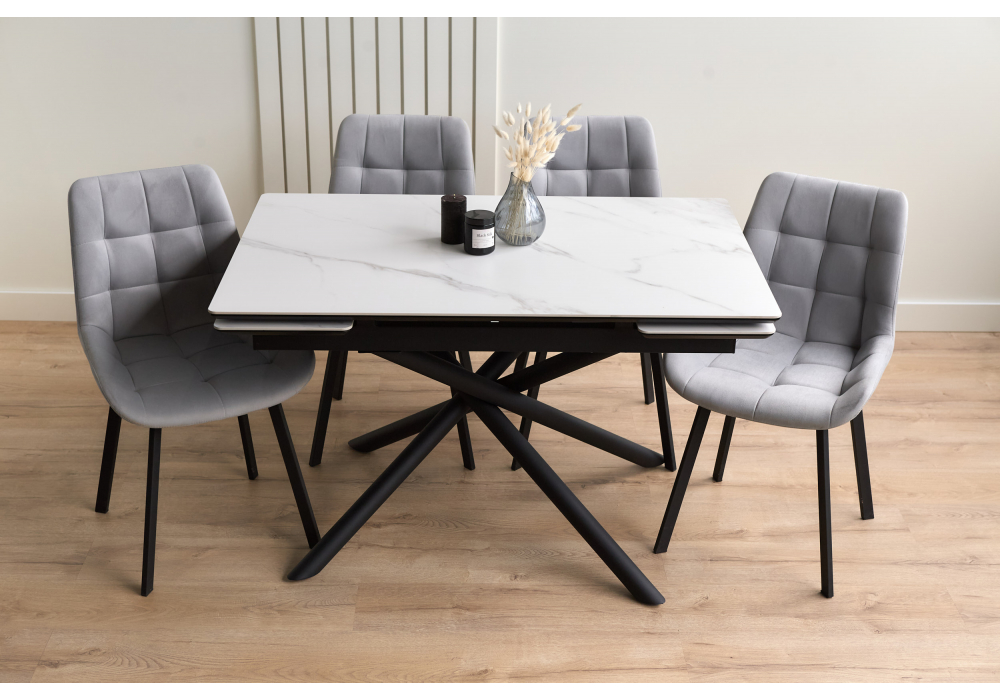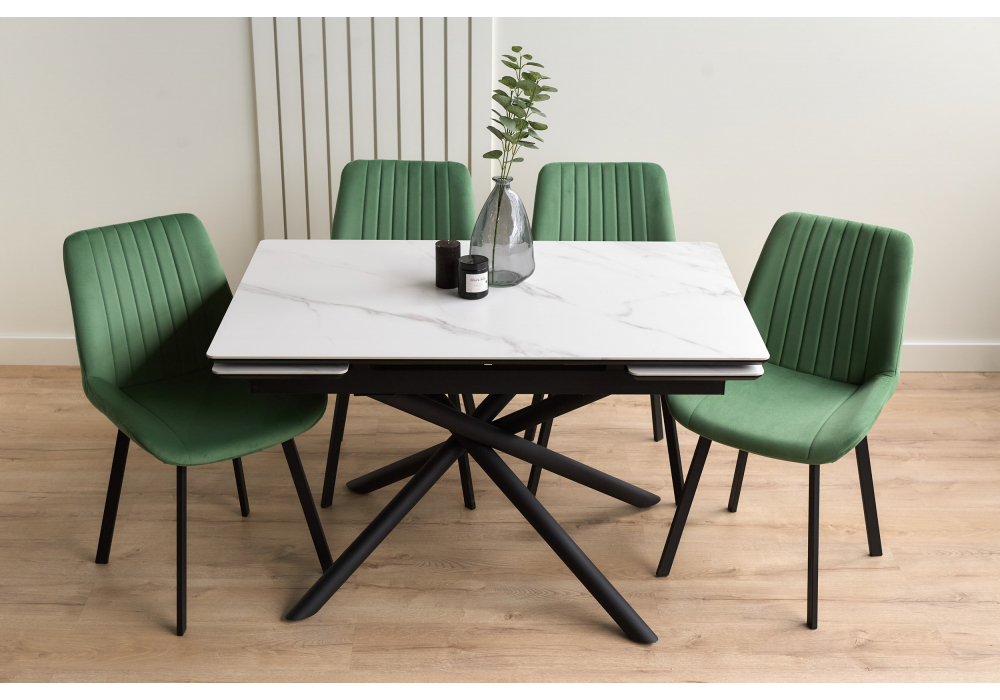 Материал каркаса - металл; Материал столешницы - Керамика; Цвет ножек - черный; Ширина - 80; Высота - 75; Длина стола в разложенном виде - 180; Длина - 120;