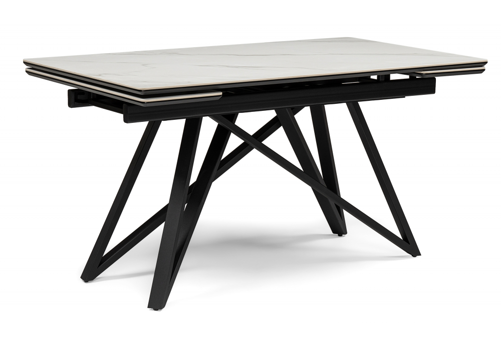 Керамический стол раскладной Woodville Вилсон 140(200)х80 белый мрамор snow white / черный 612175 в Череповце
