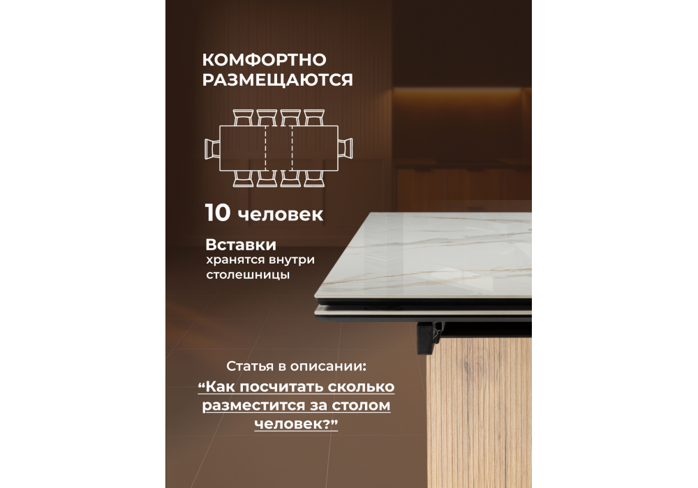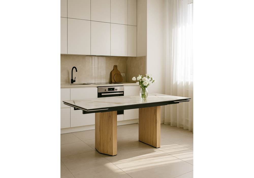 Купить "Керамический стол раздвижной Woodville Монерон 180(240)x90 calacatta gold / дуб монтана 621194"