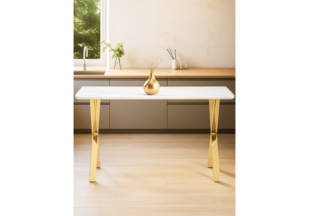 Купить "Керамический стол Woodville Селена 3 140х80х77 белый мрамор / золото 571413"