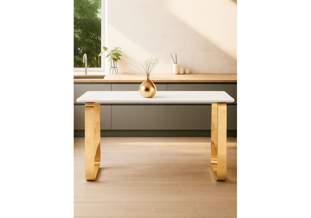 Керамический стол Woodville Селена 4 140х80х77 белый мрамор / золото 571414 в Череповце