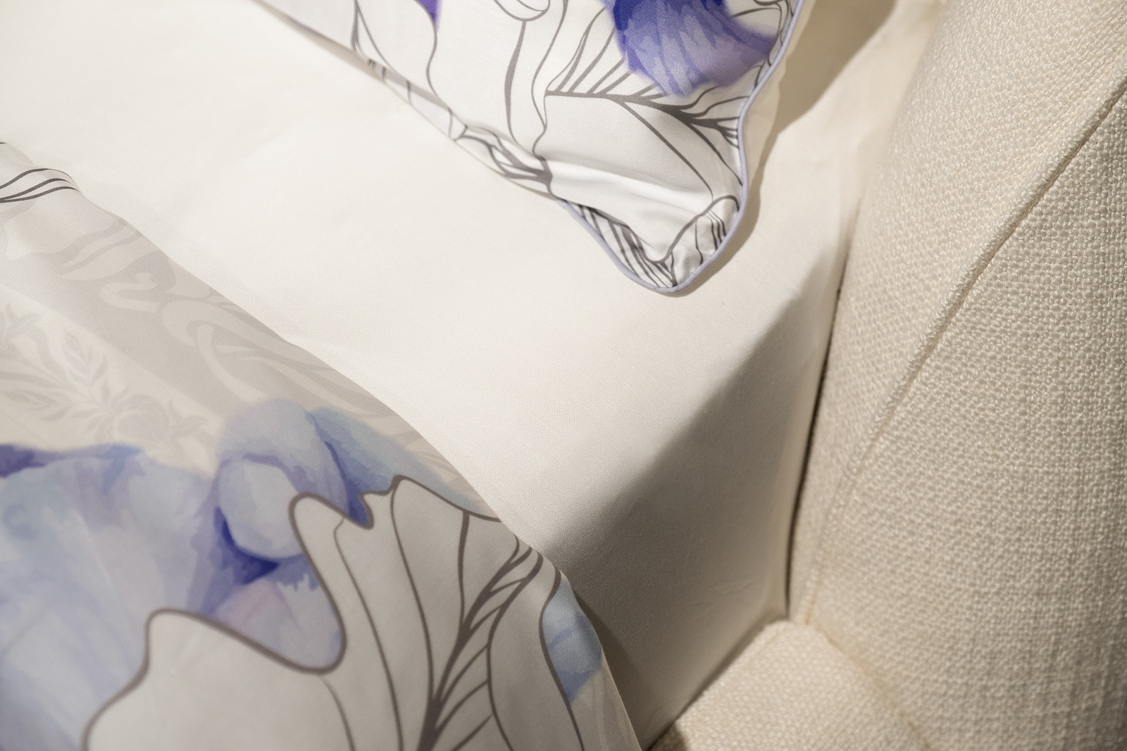 Комплект сшит из 100% ткани тенсель. Ткань мягкая, немного блестящая, как шелк, но при этом – не скользкая.