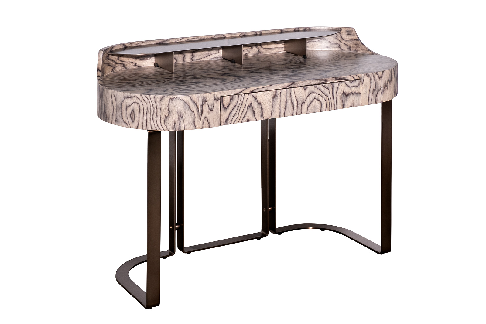 Консоль светлый шпон — изящный акцент для современного интерьера, где важны пропорции и благородные материалы. Эта консоль из светлого шпона привлекает выразительной текстурой древесины и мягкими округлыми линиями, создающими ощущение визуальной лёгкости. Тонкое металлическое основание подчёркивает архитектурный силуэт и добавляет конструкции устойчивость без утяжеления образа. Дизайнерская консоль в светлом шпоне гармонично вписывается в интерьеры в стиле modern luxury, современная классика и минимализм, дополняя пространство элегантным и функциональным элементом.