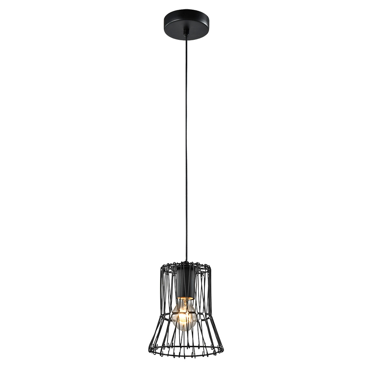 Металлическое основание подвеса и плафон-трансформер окрашены в черный цвет.