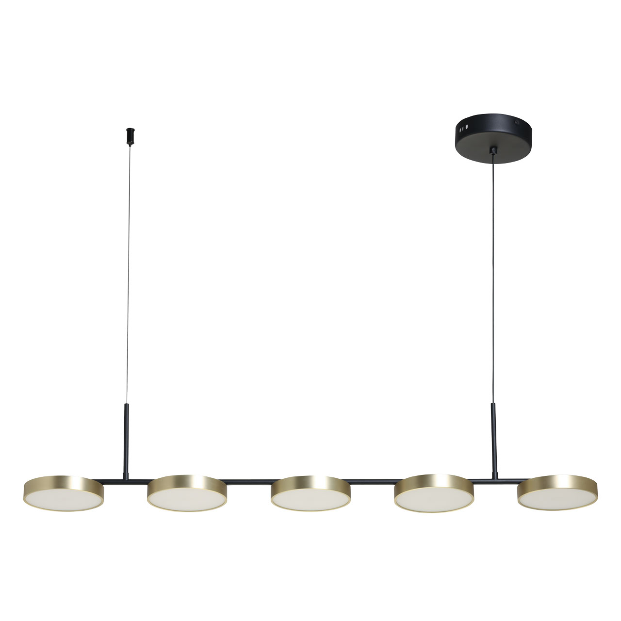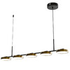 Современная люстра выполненная в популярном минималистичном дизайне в стиле хай-тэк.Золотой цвет в сочетании с черным придает светильнику гламурности.Встроенные светодиоды экономят электроэнергию и долговечны в использовании. Лаконичный и универсальный зональный светильник - находка для любителей современного стиля в интерьере. Плафон поворачивается на 320 градусов, благодаря чему возможно менять направление светового потока.Высокотехнологичный пульт позволяет легко регулировать интенсивность света.Возможность регулировать высоту люстры, устанавливая комфортную высоту.