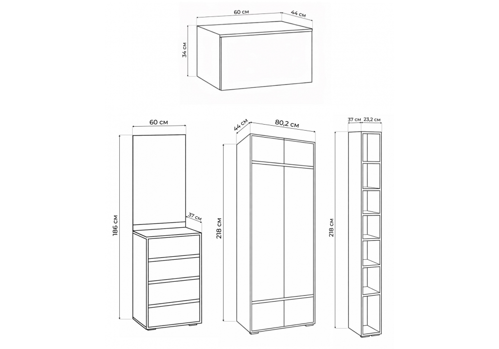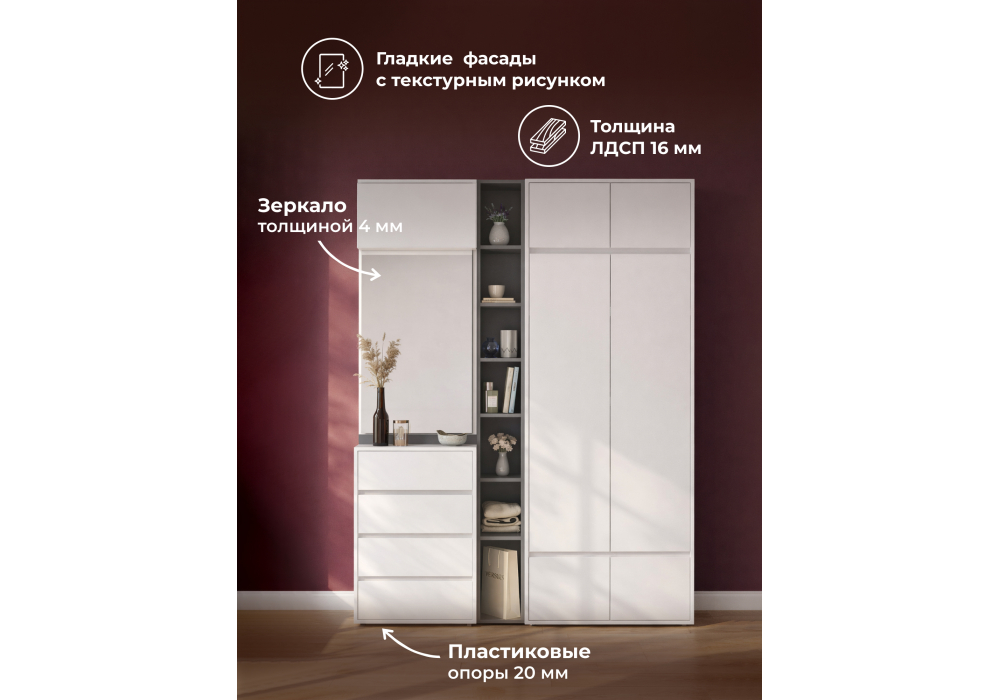 Состав комплекта 619909 -шкаф , 593733 -навесной шкаф , 619908 -готовая прихожая