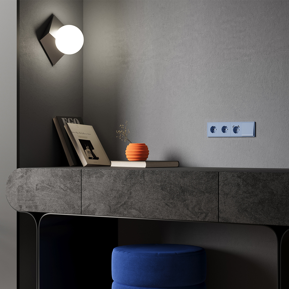 Купить "Накладка для розетки с заземлением и защитными шторками Voltum S70 VLS000715 (деним)"