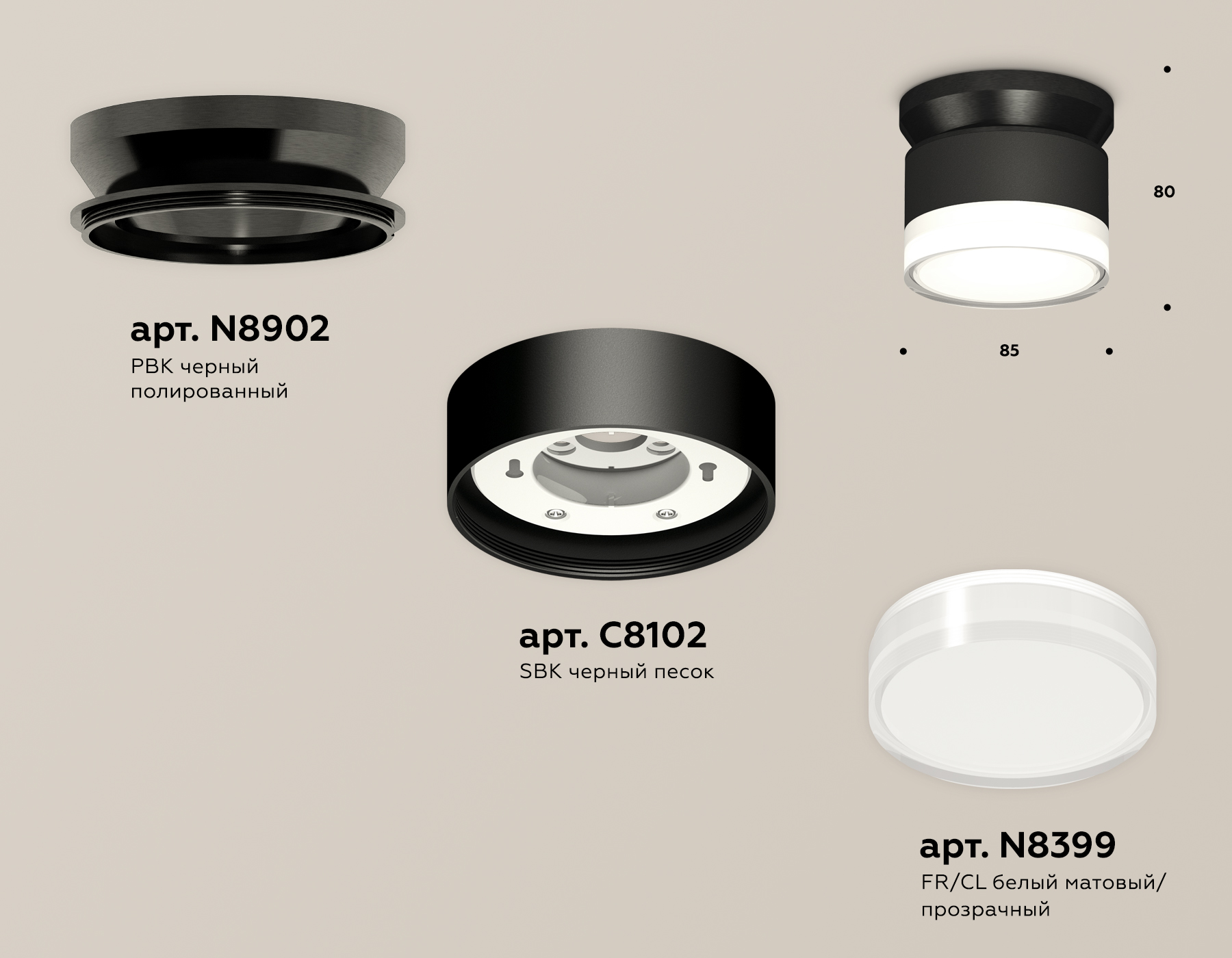 - Диаметр: 85 мм (8.5 см)