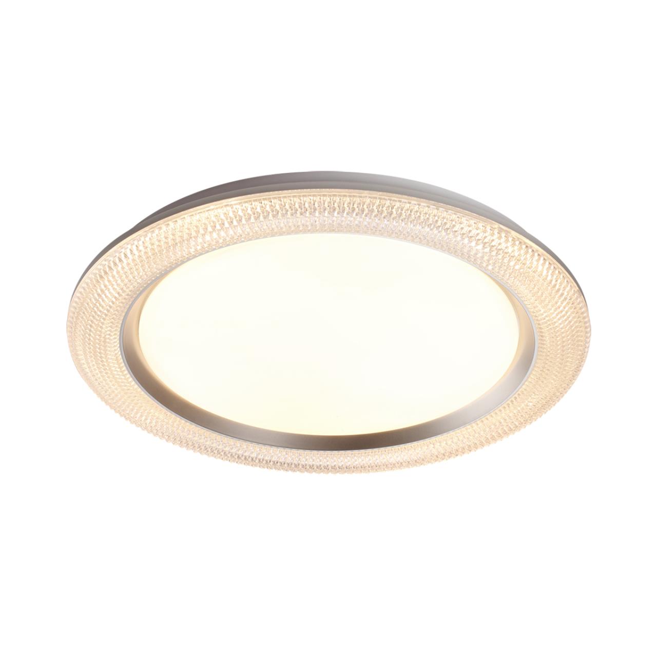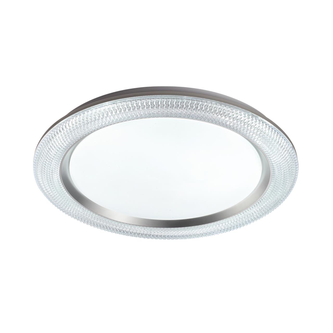 Светильник 7782/ЕL линии VENDY состоит из металлического основания (базы) и пластикового рассеивателя. Материал рассеивателя - высококачественный пластик марки PMMA 2.0 белого цвета с матовой поверхностью, обеспечивающий светильнику равномерное рассеивание и хорошее светопропускание.Форма плафона круглая, декорирована прозрачным акриловым ободом под хрусталь и кантом серебристого цвета. Степень защиты IP43 позволяет использовать светильник в определенных зонах влажных помещений. В комплект входит заменяемый LED модуль с линзами, мощностью 70Вт, которая соответствует лампе накаливания 610Вт. А также пульт ДУ, с помощью которого осуществляется плавное изменение цветовой температуры 3000-6000К, изменение яркости, переход в режим переключения теплого/белого/холодного/ночного света. Светильник имеет функцию "память". Данную модель 7782/ЕL с быстрой доставкой спешите купить в магазине 220svet.ru