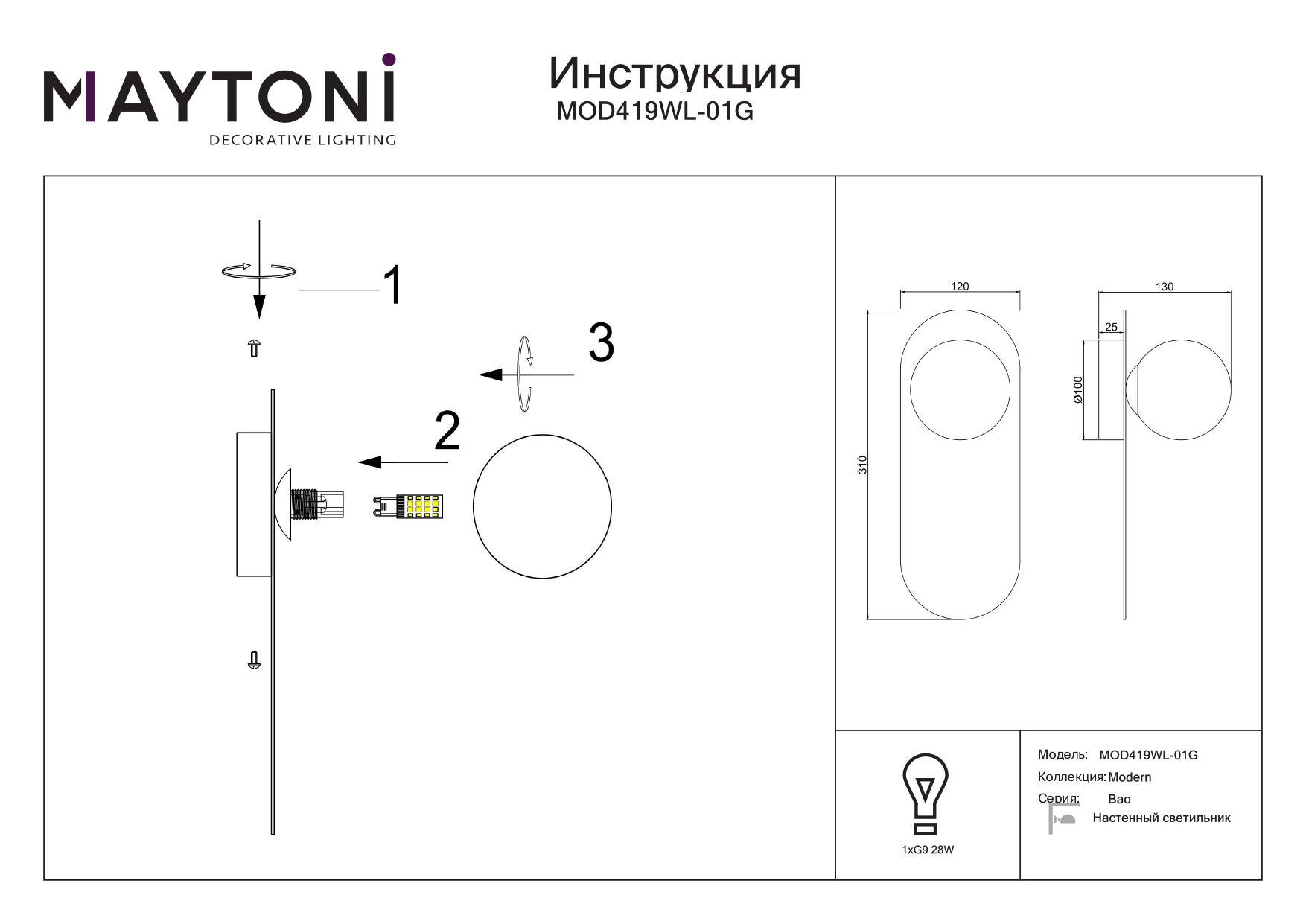 Настенный светильник Maytoni Bao MOD419WL-01G в Череповце