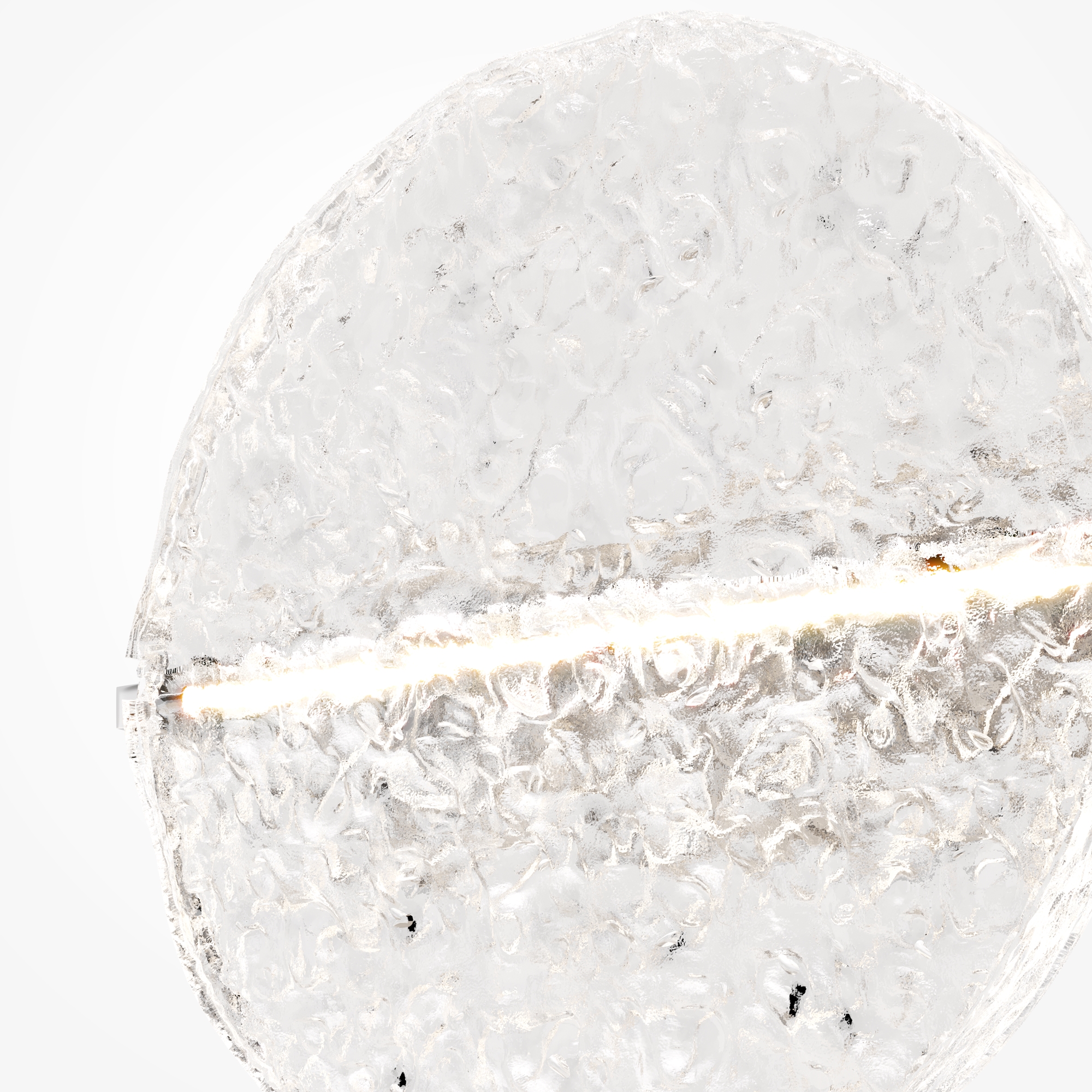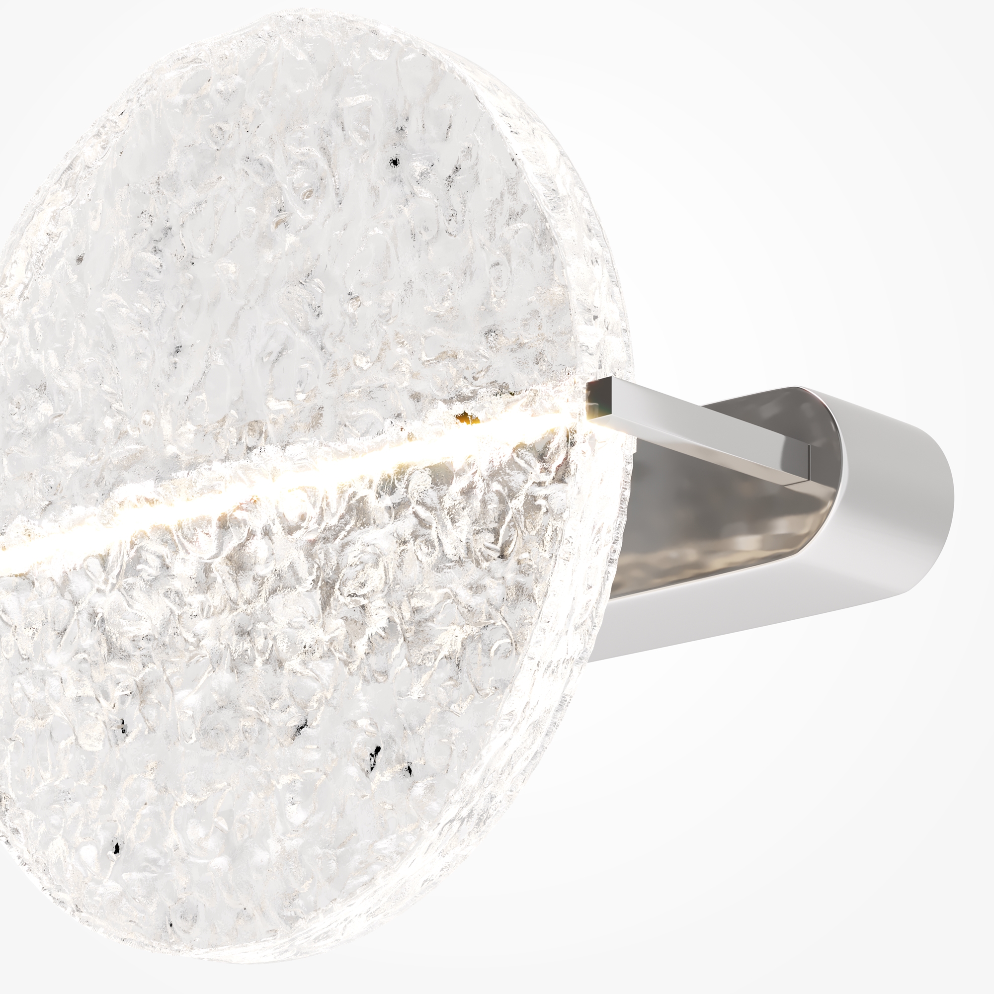 Материал арматуры - металл. Хромированное основание. Поворотный стеклянный рассеиватель, имитирующий лунное отражение на воде. LED-источник света. Настольная лампа и бра в коллекции. Возможность моделирования световых сценариев. Текстурное стекло для мягкого и широкого свечения. Дизайнерская серия, созданная в сотрудничестве с Британской Высшей школой Дизайна.