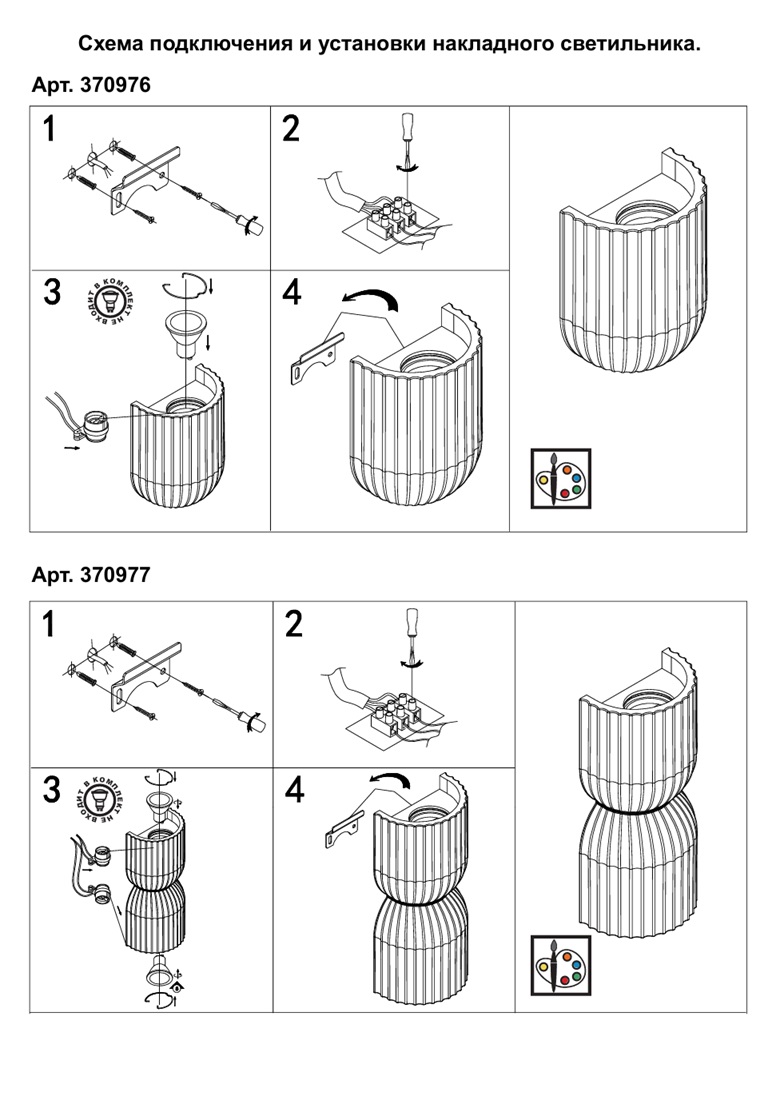 - Направление плафонов: Плафон вверх