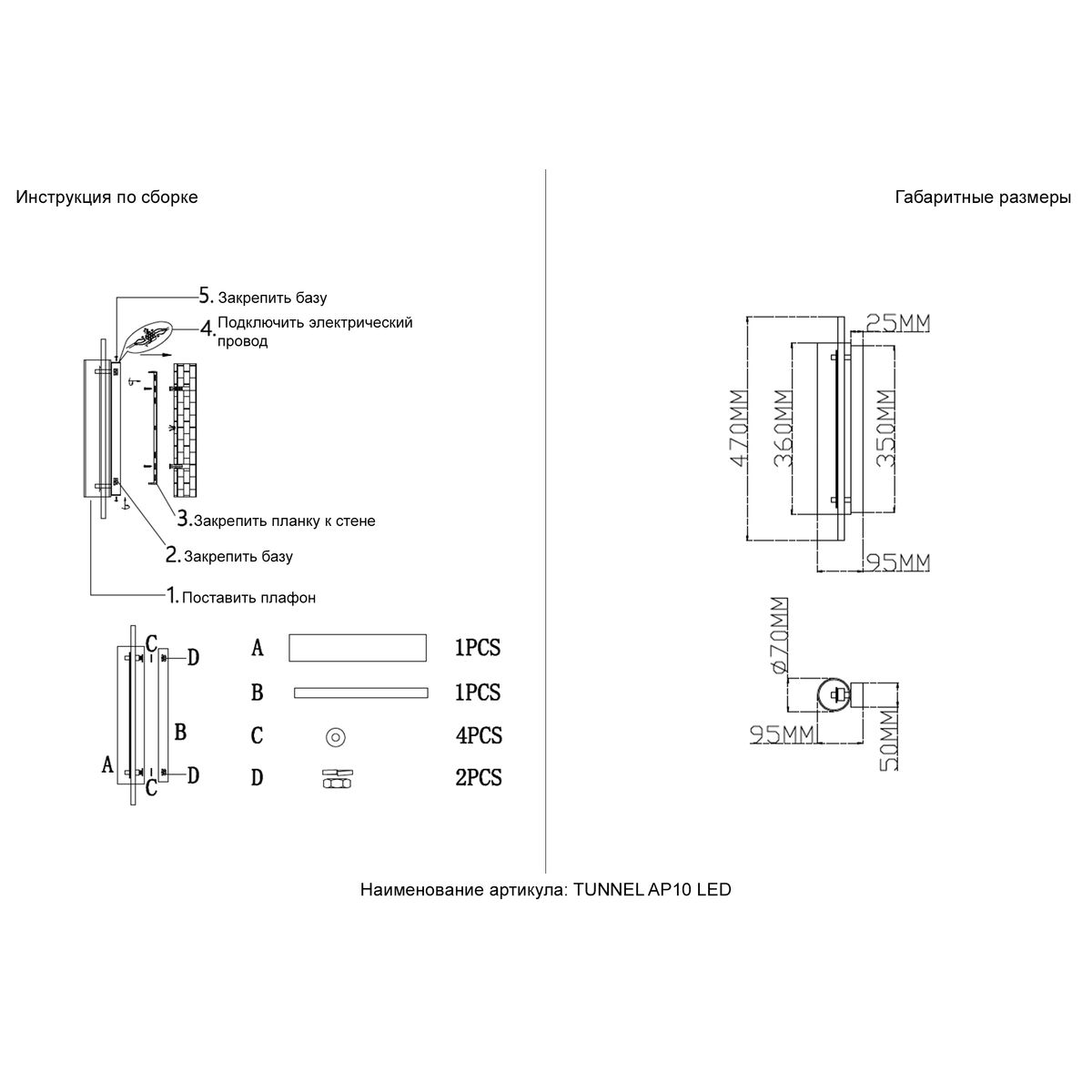 - Артикул: Tunnel AP10 Led Brass