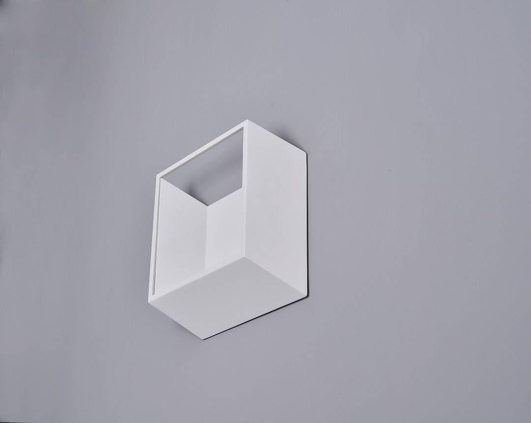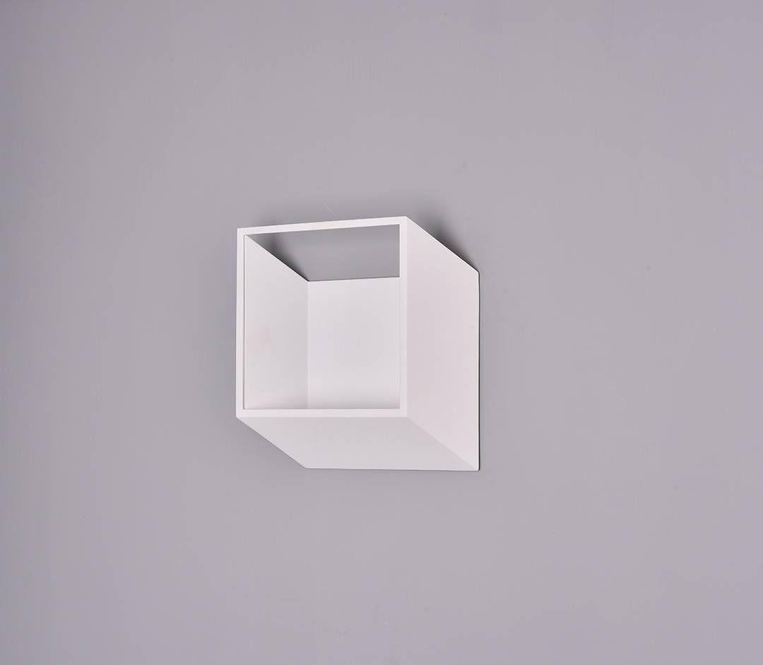 Белый настенный светодиодный светильник в виде объемного куба с открытой лицевой стороной.