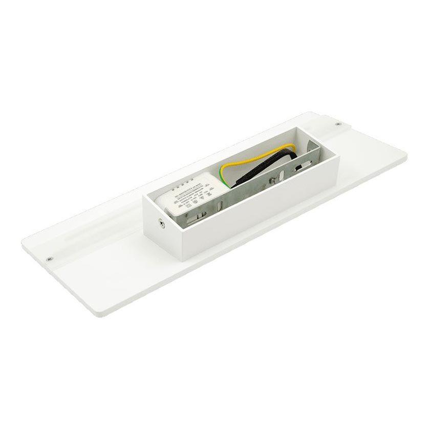 Белый светодиодный светильник в виде прямоугольника с металлическим рассеивателем.