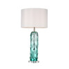 Настольная лампа с абажуром белого цвета. Основание из стекла ручной работы бирюзового цвета. Размер абажура D35хH26cm