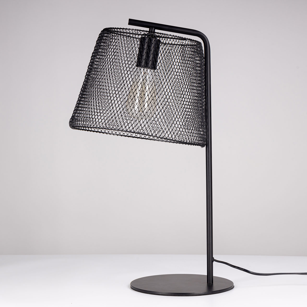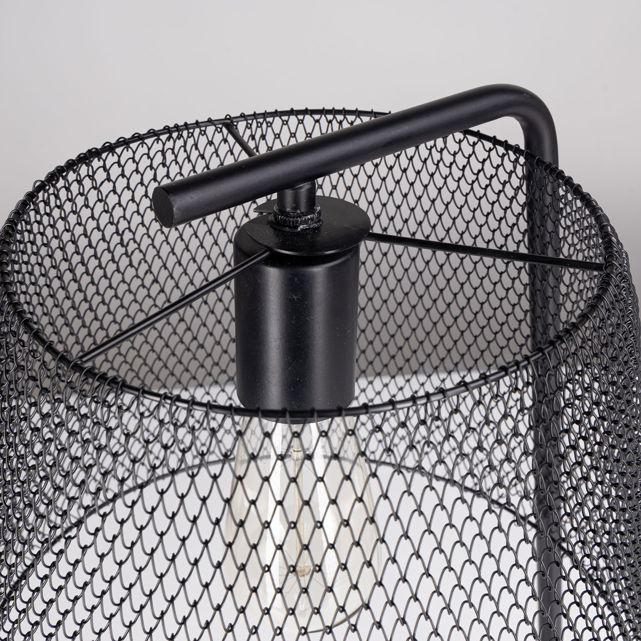 Металлическое основание и плафон в виде сетки окрашены по технологии электрофореза в черный матовый цвет.