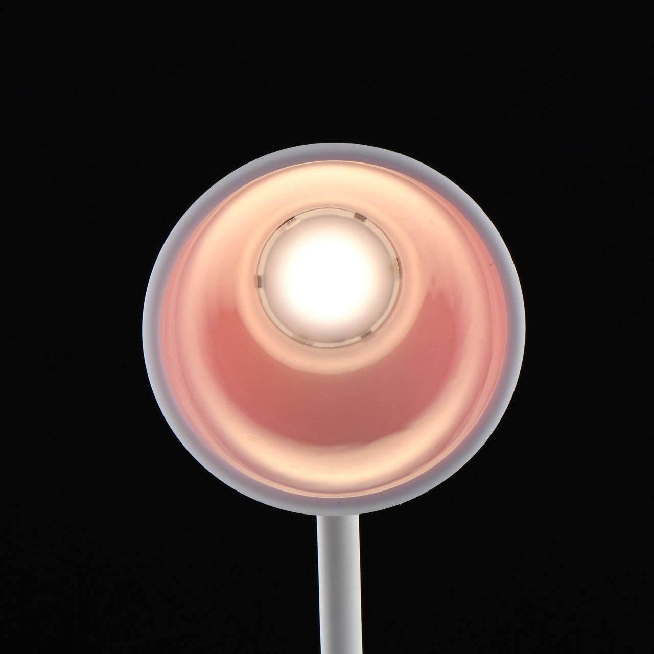 Основание светильника выполнено из акрила белого цвета. Гибкий держатель плафона выполнен из силикона белого цвета. Плафон выполнен из двухслойного акрила. Внутренний слой - белый матовый акрил, внешний - прозрачный глянцевый красный. Светодиодный источник света типа SMD Chip закрыт белым матовым акрилом.