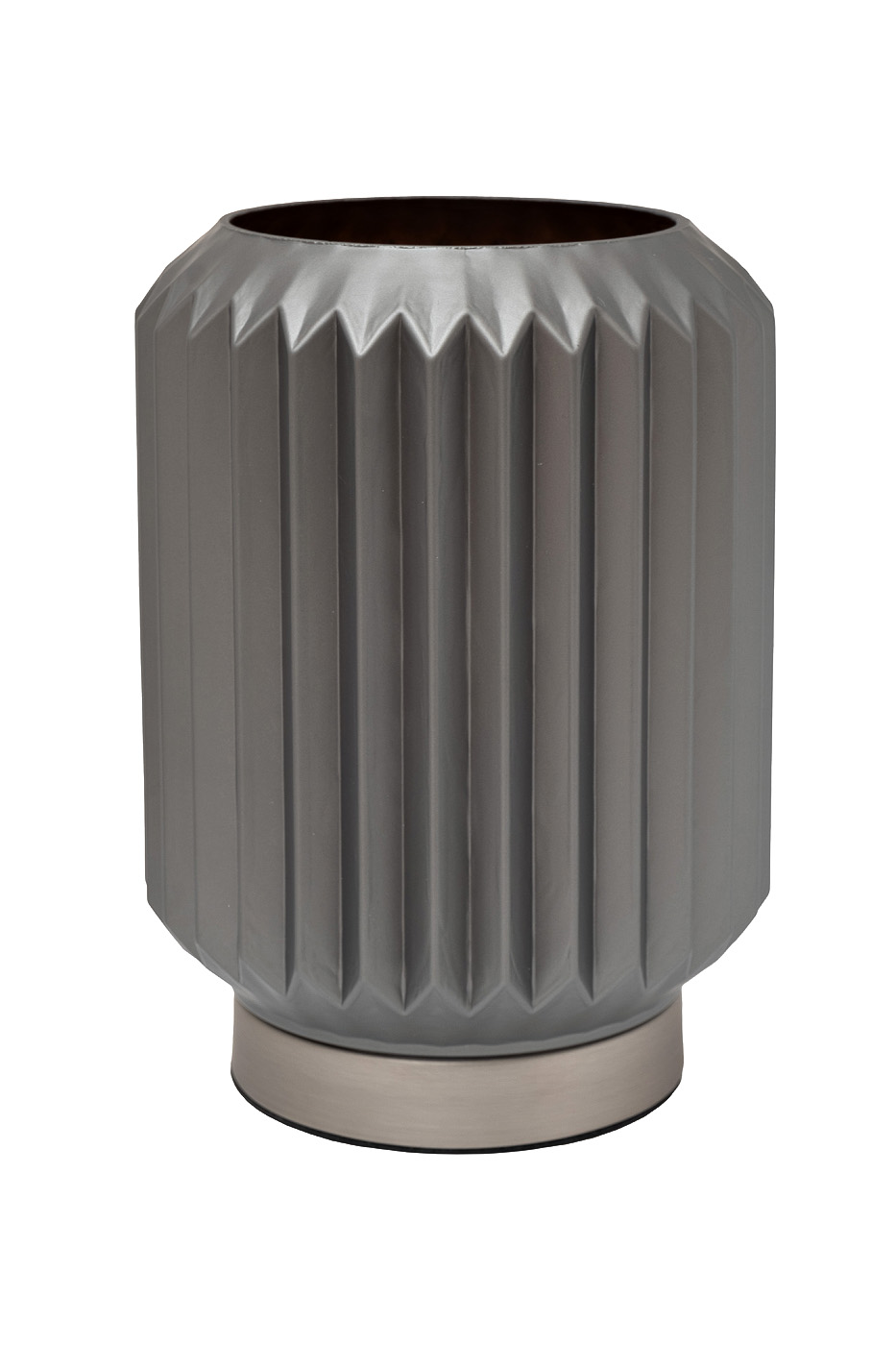 Настольная лампа из дымчатого стекла с лаконичным дизайном украшает собой пространство и дает мягкий комфортный для глаз свет. Прекрасно впишется в современный интерьер гостиной, спальни, столовой, рабочего кабинета, прихожей. Глубокий серый цвет и оригинальная форма делают этот настольный светильник универсальным решением для современного или классического интерьера. Сочетание металлического основания и матового рифленого стекла стильно выглядит.
