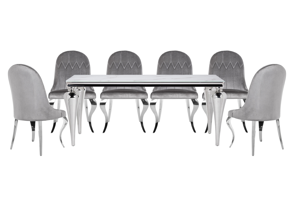 Изумительная модель 599469 от Российского производителя Woodville относится к коллекции Карли . Материал каркаса - Металл; Материал сиденья - Велюр; Материал ножек - Металл; Материал столешницы - Стекло; Материал обивки - Велюр; Цвет каркаса - Хромированный металл; Цвет сиденья - Серый; Цвет ножек - Хромированный металл; Цвет столешницы - Белый; Цвет обивки - Серый; Длина стола - 180; Ширина стола - 90; Высота стола - 76; Ширина стула - 53; Глубина стула - 58; Высота стула - 95 . Данную модель 599469 с быстрой доставкой спешите купить в магазине 220svet.ru