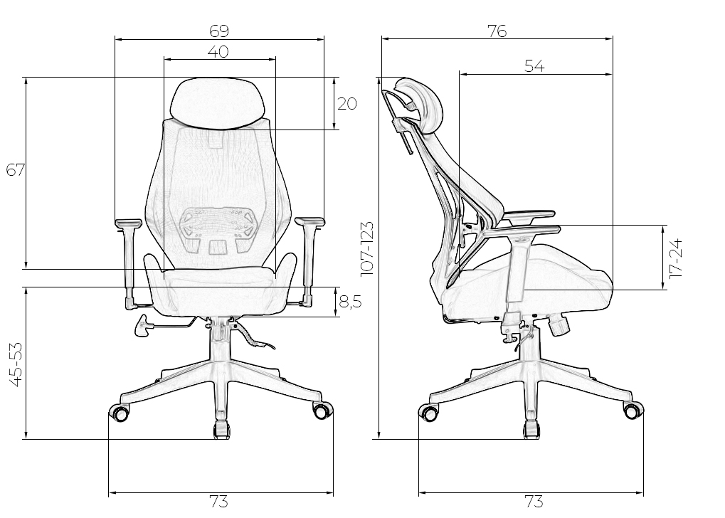 - Глубина сиденья: 540 мм