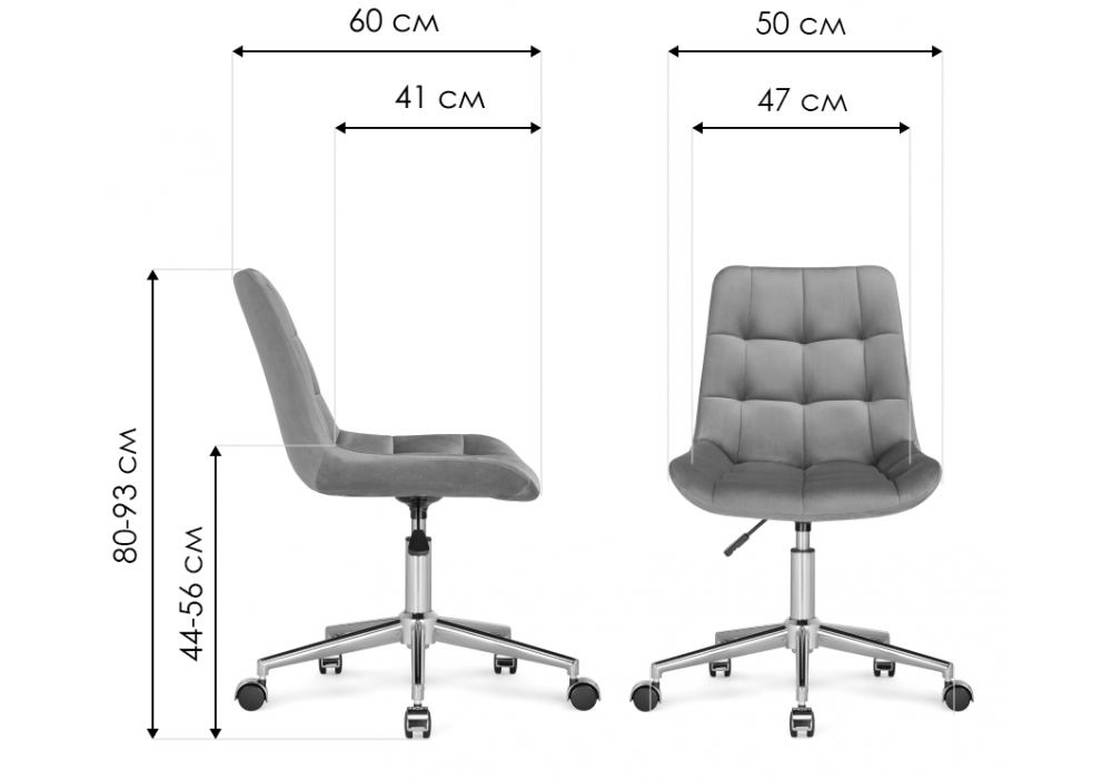 Высота спинки: 38 см. Материал каркаса - металл; Материал сиденья - велюр; Материал обивки - велюр; Цвет ножек - белый; Ширина - 50; Глубина - 60; Высота - 80; Ширина сиденья - 47; Глубина сиденья - 41; Высота сиденья - 44; Высота спинки - 39; Высота максимальная - 93;