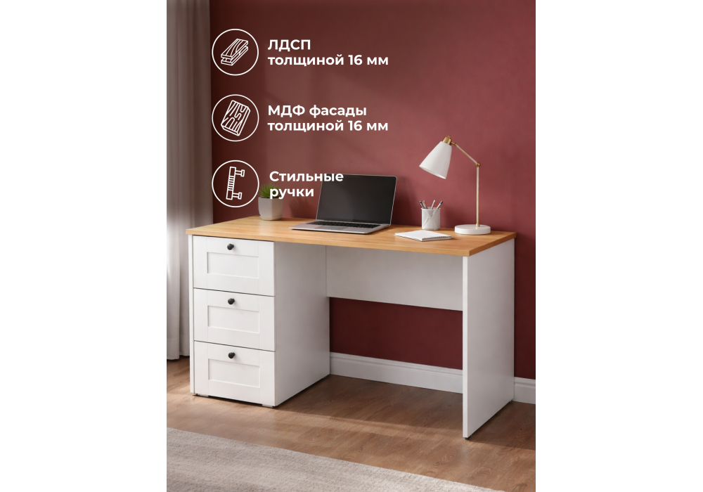 Письменный стол Woodville Опра белый шагрень / дуб золотой craft 676810 в Череповце