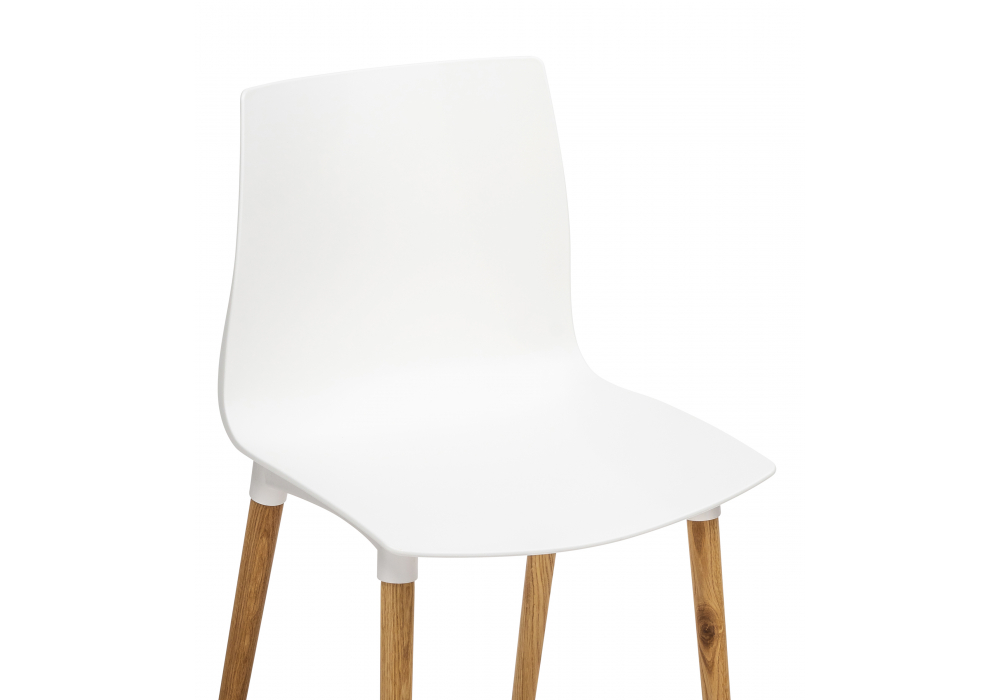 Материал каркаса - Массив дуба; Материал сиденья - Пластик; Материал ножек - Массив дуба; Цвет каркаса - Белый; Цвет сиденья - Белый; Цвет ножек - Натуральный; Ширина - 44; Глубина - 49; Высота - 80; Ширина сиденья - 44; Глубина сиденья - 39; Высота сиденья - 46