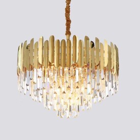 Высота изделия 1150 мм, диаметр 1000 мм, что позволяет осветить пространство от 25 до 35 квадратных метров. Количество ламп - 20 штук с цколем Е14. Люстра выполнена в элегантном золотом цвете и дополнена элементами из прозрачного серого хрусталя, который подчеркнёт вашу изысканность и вкус. Металлическая арматура обеспечивает долговечность и устойчивость конструкции, а лампы равномерно рассеивают свет, создавая комфортное освещение. Благодаря использованию светодиодных ламп вы сможете значительно сэкономить на электроэнергии, не теряя при этом яркости света.