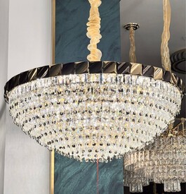 Высота изделия 1150 мм, диаметр 1000 мм, что позволяет осветить пространство от 25 до 35 квадратных метров. Количество ламп - 20 штук с цколем Е14. Люстра выполнена в элегантном золотом цвете и дополнена элементами из прозрачного хрусталя, который подчеркнёт вашу изысканность и вкус. Металлическая арматура обеспечивает долговечность и устойчивость конструкции, а лампы равномерно рассеивают свет, создавая комфортное освещение. Благодаря использованию светодиодных ламп вы сможете значительно сэкономить на электроэнергии, не теряя при этом яркости света.