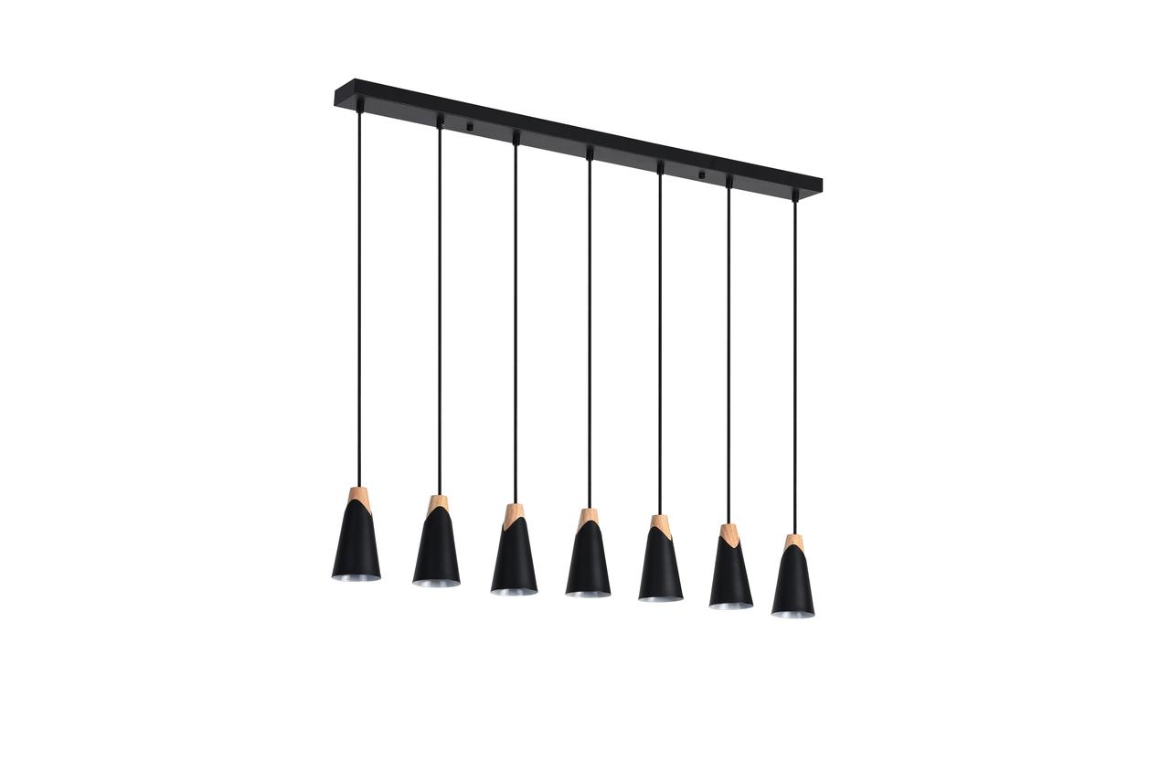 Подвесная люстра F3524-35 в стиле модерн станет элегантным дополнением к любому интерьеру. Ее дизайн в черном цвете с ополнением их дерева придает особый шарм и создает уютную атмосферу в помещении. Изготовлена из высококачественных материалов - металла и дерева. Высота 1000 мм, длина 900мм. Светильник оснащен 7 лампами с цоколем G9, что обеспечивает яркое и экономичное освещение. С площадью освещения 5-7 кв.м подвесная люстра идеально подойдет для гостиной, столовой или спальни. Произведена в Италии, но изготовлена в Китае. Приобретите эту стильную и функциональную люстру для создания уютной атмосферы в вашем доме или офисе.