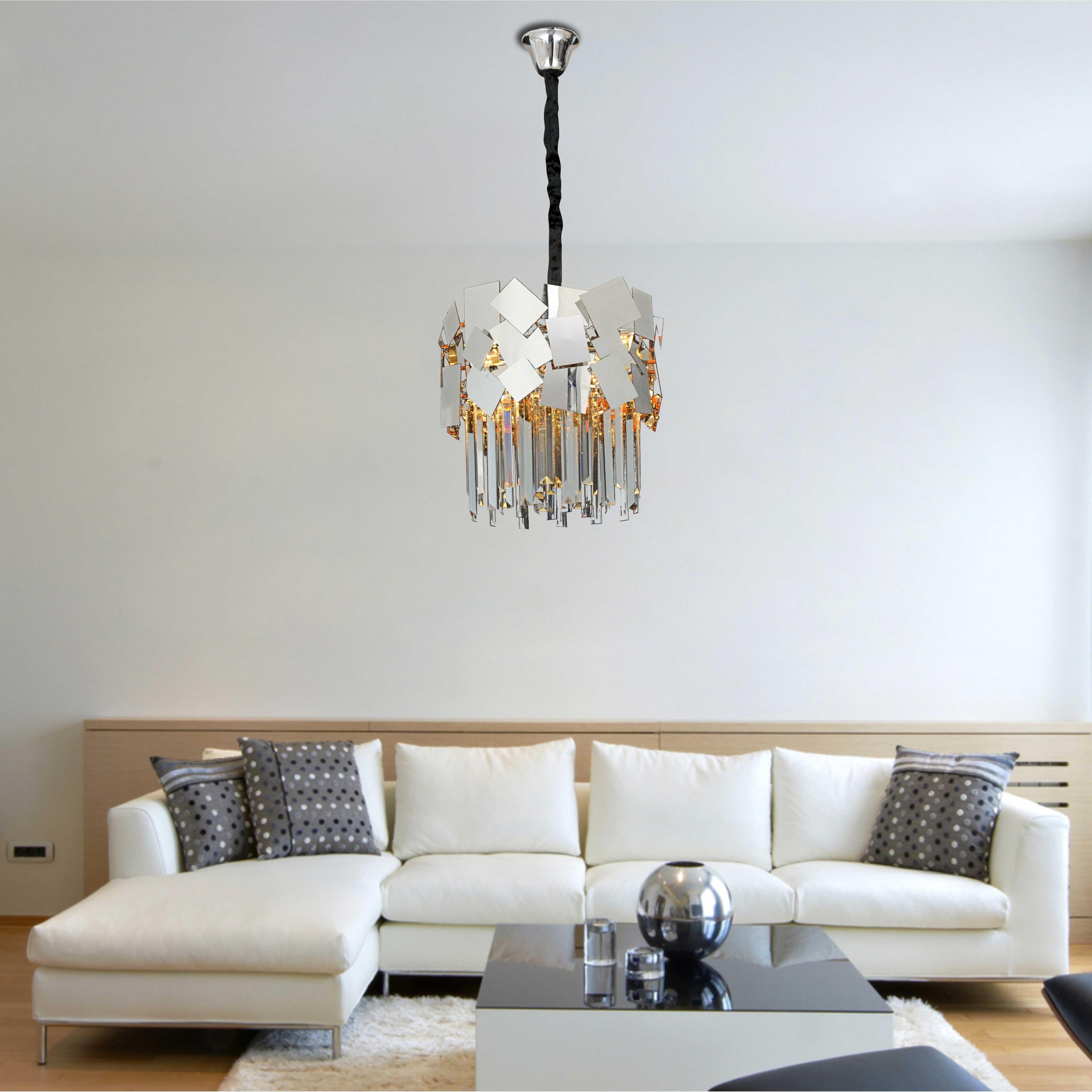 Люстра подвесная в стиле неоклассика – это идеальное сочетание элегантности и современности. Хромированный металл в сочетании с прозрачным стеклом создаёт визуальную легкость и изысканность, что делает данное изделие подходящим для различных интерьеров. Каждый из доступных размеров (диаметр от 400 до 750 мм) позволяет подобрать люстру как для небольших, так и для просторных помещений, обеспечивая площадь освещения от 10 до 25 кв.м.