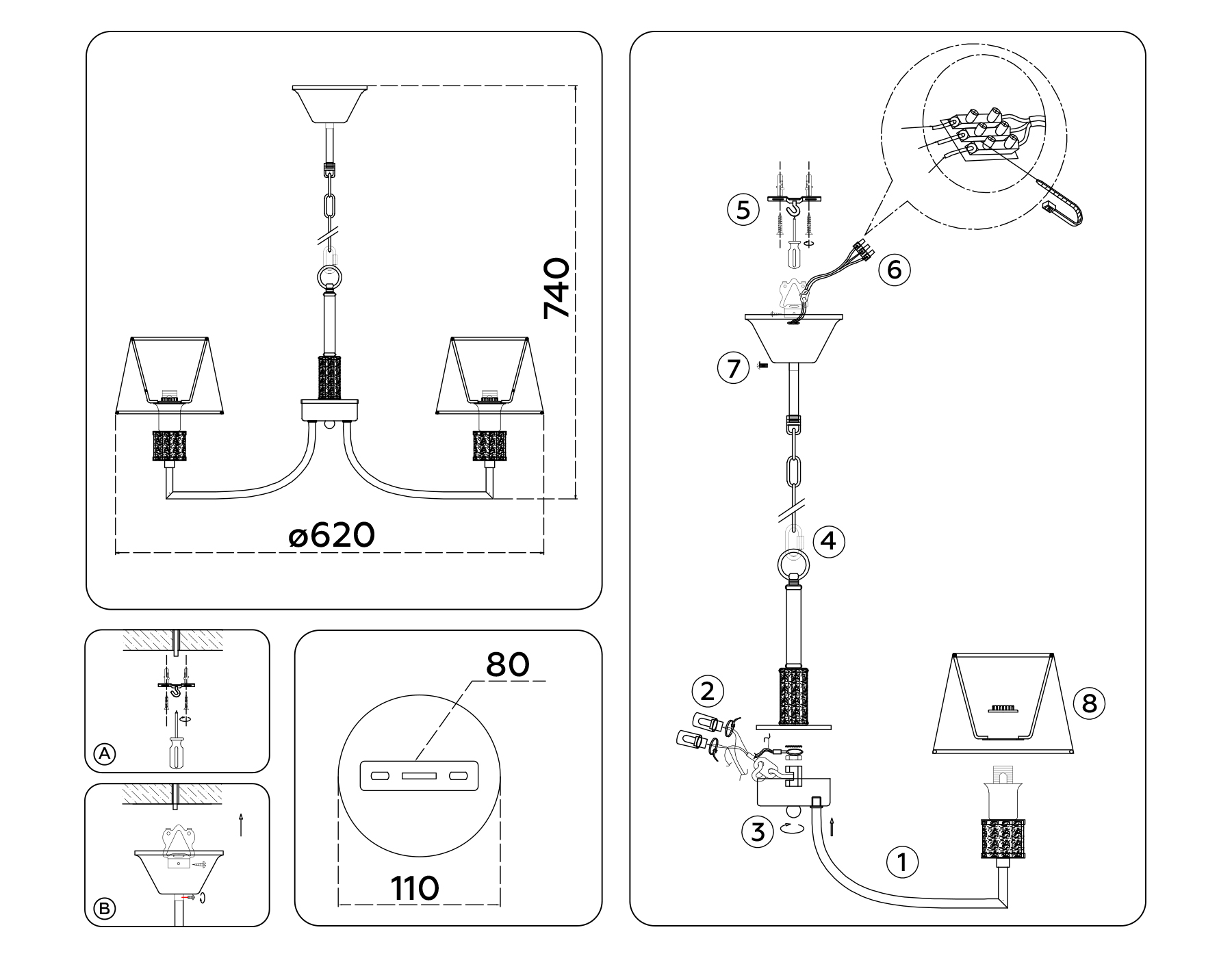 ?Способ крепления и установки люстры.