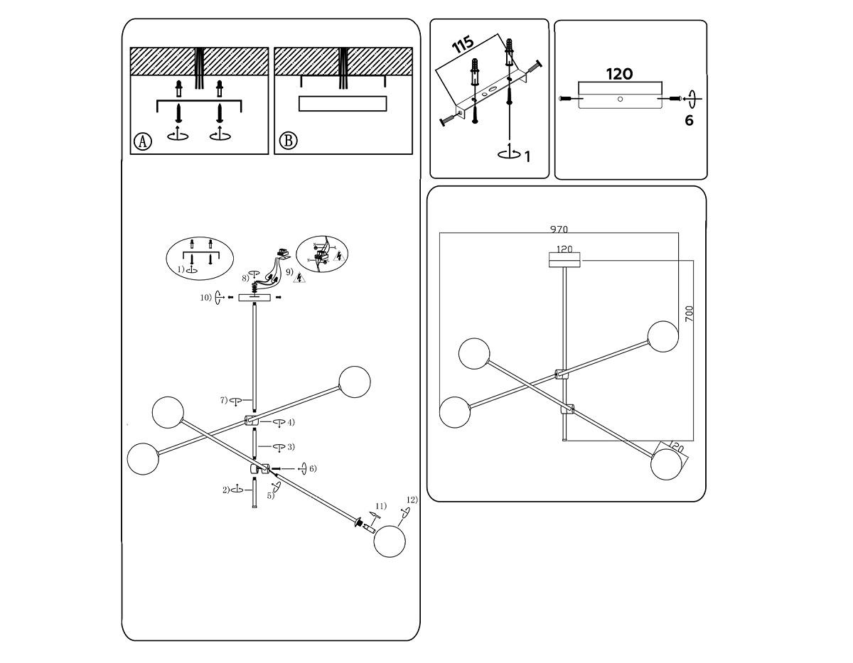 ?Способ крепления и установки люстры.