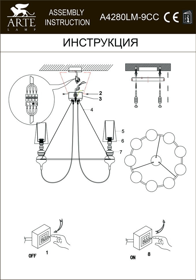 - Направление плафонов: Плафон вверх