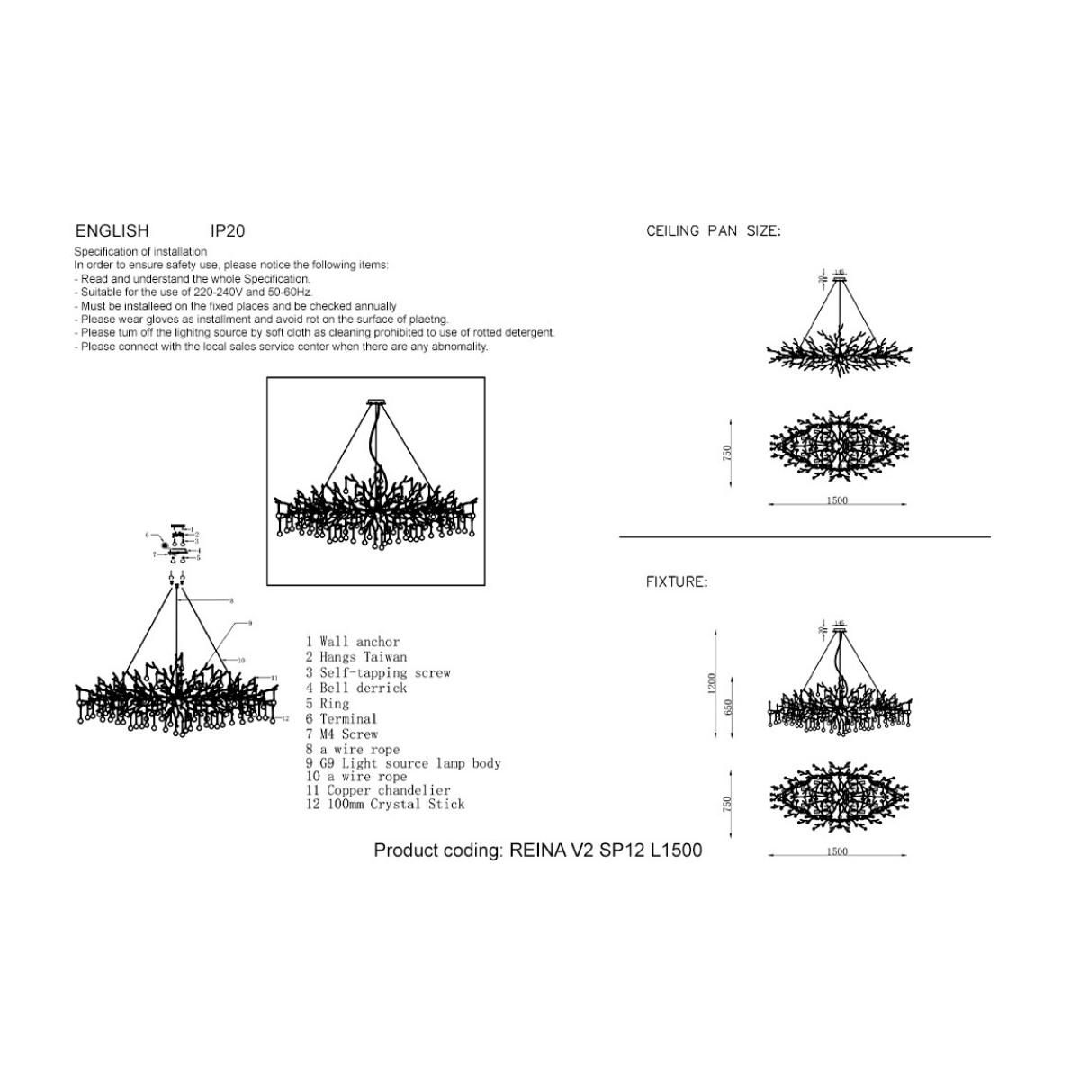 Купить "Подвесная люстра Crystal Lux REINA V2 SP12 L1500 GOLD PEARL"